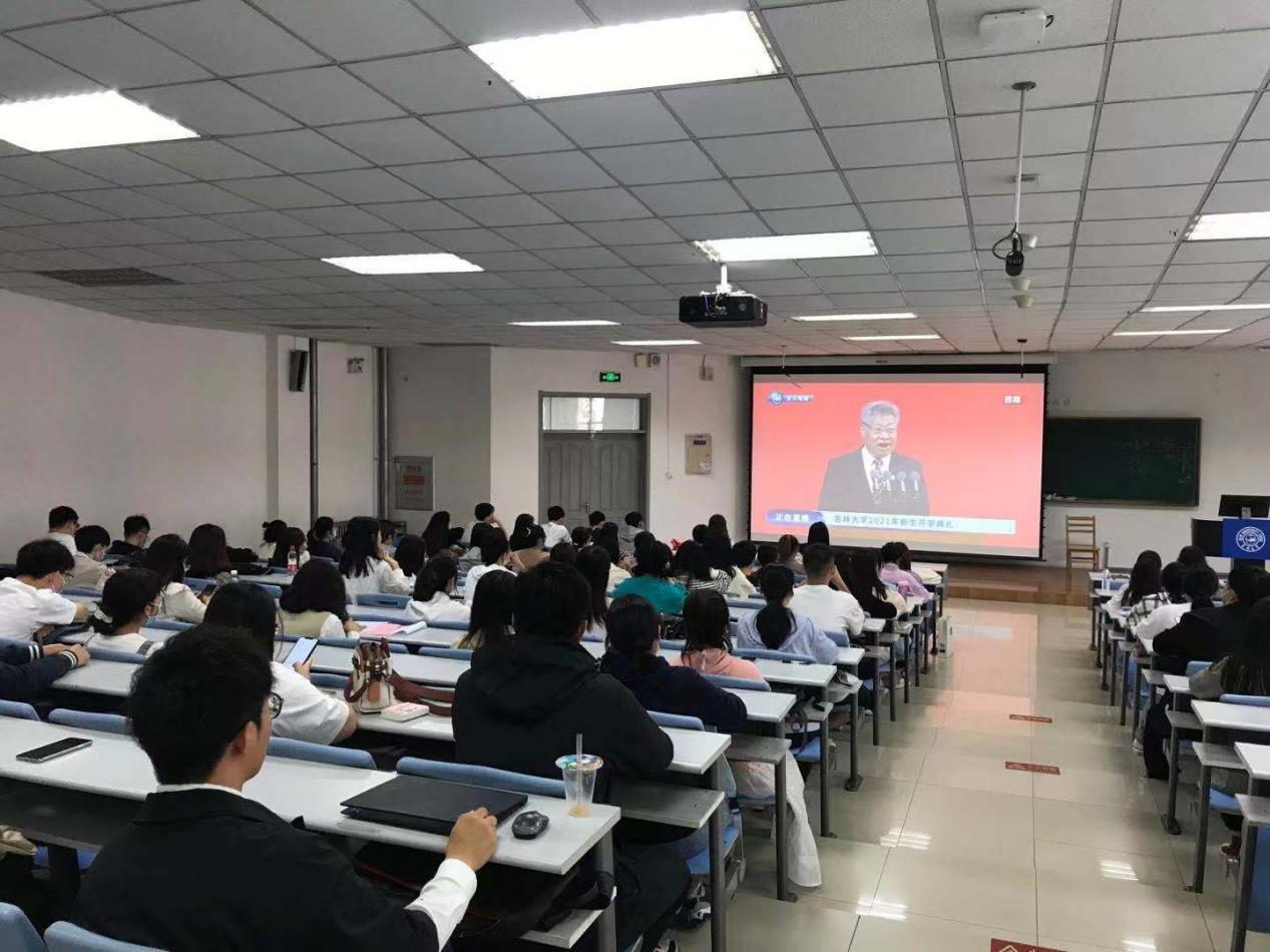 2021年9月28日上午,Galaxy银河在新民校区第二教学楼设分会场组织2021级新生集体观看吉林大学2021级新生开学典礼。Galaxy银河党委副书记曹国丽,研究生辅导员孙佳钰以及Galaxy银河全体2021级新生参加了分会场开学典礼