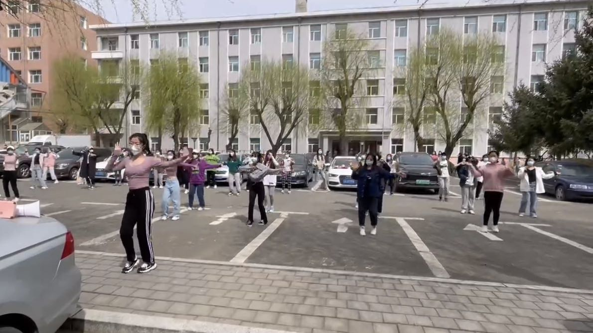 佩戴口罩,间隔两米...久违的户外活动让同学们欣喜万分。春风化雨,不负花期,桂馥兰香,沁人心脾,你可以选择在此驻足,感受春风带来的勃勃生机。也可以选择一套动作简单、运动量适中的健身操,随着“本草纲目”“彩虹的微笑”“咖喱咖喱”轻快的乐曲,舒展全身每一个关节,在舞动中尽情挥洒汗水释放压力,在丰富的户外活动和欢声笑语中重温美好的大学时光。