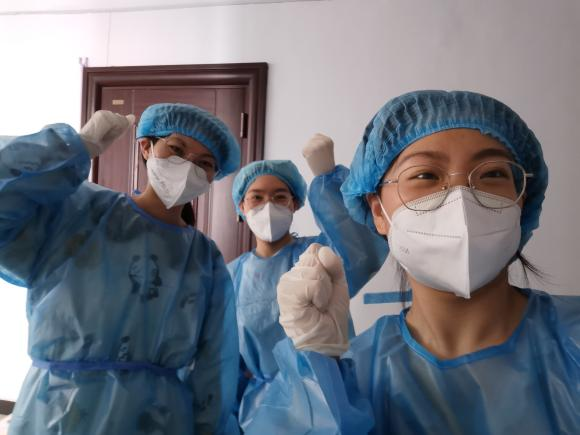 协助医务人员进行核酸检测是最危险与繁重的任务,支部四名支委张丹、索家乐、安倩文、王闰楠勇于承担,主动请缨,协助核酸采样人员统计信息、扫码、维持现场秩序,前往每个寝室敲门叮嘱。正值青春年华的她们,只是一个个普通的女孩儿,却在危难的时刻挺身而出,毫无畏惧,全心全意的为同学们服务。