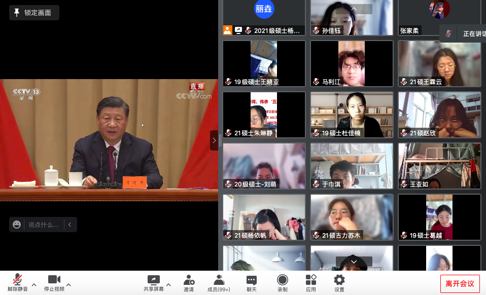 庆祝中国共产主义青年团成立100周年大会于5月10日上午在北京人民大会堂隆重举行。Galaxy银河组织全体团学组织骨干、党支部和团支部全体同学线上观看庆祝大会,学习领会总书记讲话精神,会后开展学习讨论。