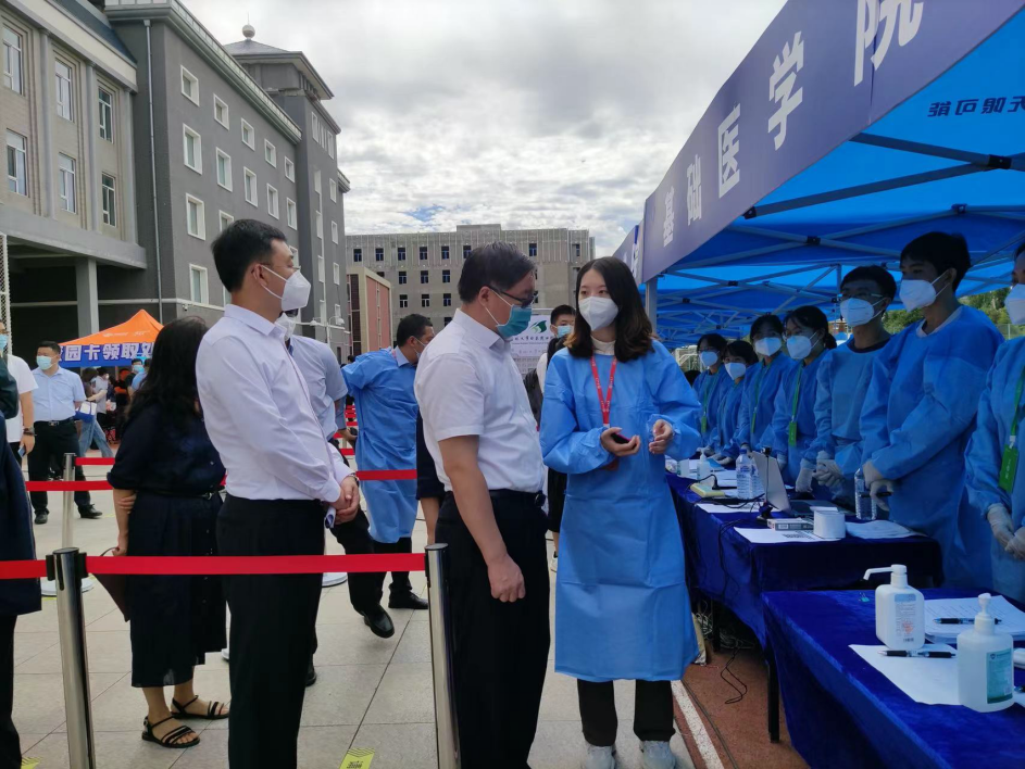 迎新期间,吉林大学党委常委、副校长王玉柱,党委常委、副校长赵国庆、党委研究生工作部部长赵玥等领导莅临报道现场,详细了解新生报到情况,对我院迎新工作给予高度认可,并向迎新志愿者们表示感谢和慰问,同时为前来报到的新同学送上关怀。