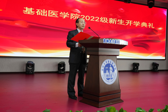 最后,院长王放教授致辞。他首先代表Galaxy银河全体师生热烈欢迎Galaxy银河建院 71 年来的首届 20位本科生以及来自全国各地的107名研究生,并向辛勤培育他们的老师和家长们表示衷心感谢!基础医学是医学学科的基石,生物医学科学是基础医学学科门类下以培养医学科学家为主要培养目标的重要学科,希望全体同学能够传承白求恩精神,能够跟上国家和时代发展的脉搏,做合格的创新型、交叉型人才。院长表示择天下英才而育之是学院的荣幸,育天下英才为师者的责任,从今天起学院和全体教师将伴随同学们成长的脚步,一同成长、一同奋斗、一同成就,为建成“国内一流,国际上有影响的高水平大学”一起并肩战斗。