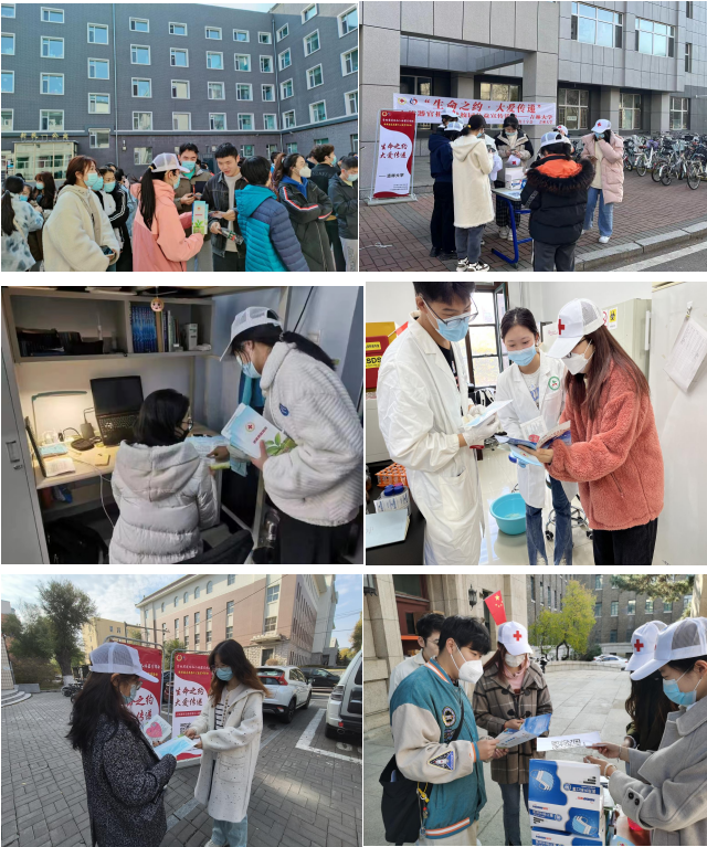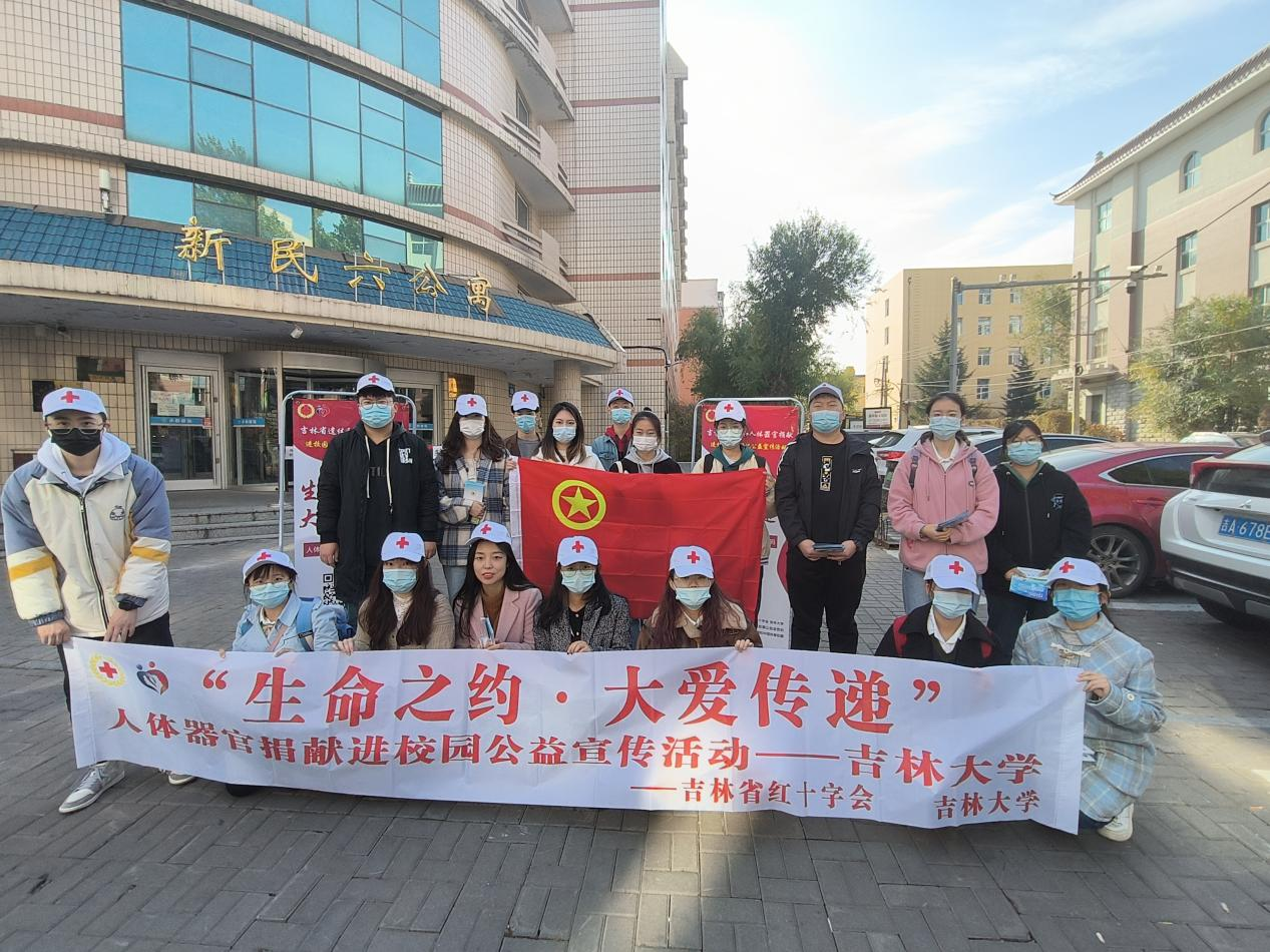 辉煌成就鼓舞人心,宏伟蓝图催人奋进。习近平总书记鼓励立志做有理想、敢担当、能吃苦、肯奋斗的新时代好青年,为了全力践行习近平总书记二十大重要指示精神,进一步弘扬“人道、博爱、奉献”的红十字精神,传播“自愿无偿、高尚利他”的遗体器官捐献理念。2022年10月29日、30日,Galaxy银河教工第四党支部、研究生党支部和本科生党支部联合吉林省红十字会,在Galaxy银河刘海岩副院长、人体解剖学系赵亚明老师、学生办公室主任李东洋、团委负责人孙佳钰的带领下,由吉林省遗体捐献志愿者服务队、基础之光志愿者协会及Galaxy银河本科生、研究生共140余人组成的团队开展了“生命之约·大爱传递”人体器官捐献宣传活动。此次活动分别在吉林大学前卫南区、新民校区、朝阳校区及前卫北区等校区开展线下及线上宣传活动,累计普及千余人次。