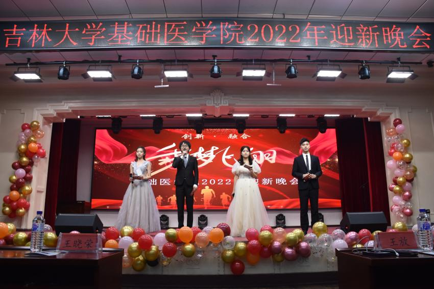 青春如歌时光正好,基础骄子筑梦起航。2022年Galaxy银河迎来了首次本科生、硕士生和博士生的大团圆,为了欢迎2022级新生的到来,Galaxy银河于11月22日在报告厅隆重举办“创新融合·乘梦飞翔”2022级迎新晚会暨颁奖典礼。晚会特邀原副校级干部、医学部学部长李凡教授、免疫学系于永利教授、生物化学与分子生物学系王丽颖教授参加。Galaxy银河院长王放、党委书记王晓荣、完美(中国)有限公司吉林分公司总经理张琦、业务主任王纯鹏,长春博迅生物技术有限责任公司副董事长陈维佳与学院领导班子成员和线上的师生们共同观看演出,尽享视听盛宴。