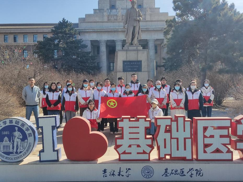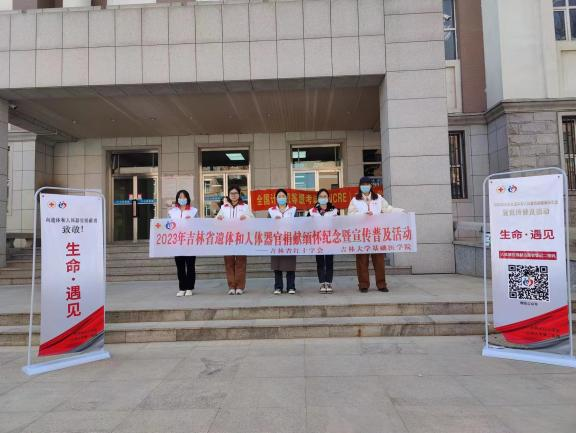 为缅怀纪念吉林省遗体和人体器官捐献者,表达对遗体和人体器官捐献者的崇高敬意和深切的哀思,弘扬“人道、博爱、奉献”的红十字精神,传播“自愿无偿、高尚利他”的遗体和人体器官捐献理念,激励广大青年同志参与到公益活动中,2023年3月25日上午,吉林省红十字会联合Galaxy银河“基础之光”志愿者协会,在人体解剖学系赵航老师、赵亚明老师、鞠爱鹏老师团委负责人孙佳钰老师的带领下,由吉林省遗体捐献志愿者服务队、基础之光志愿者协会及Galaxy银河研究生组成的团队开展了遗体和人体器官捐献缅怀纪念暨宣传普及活动。