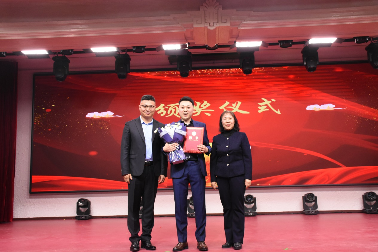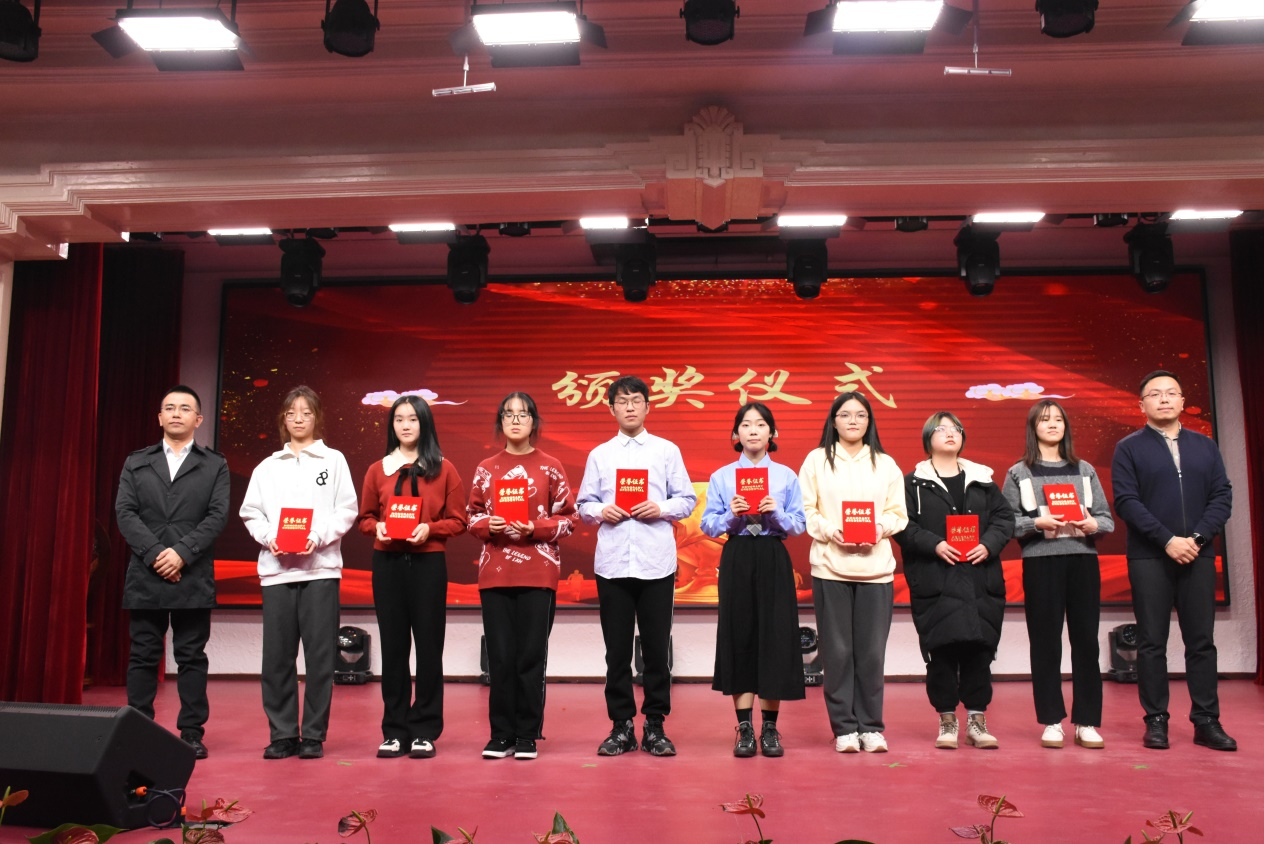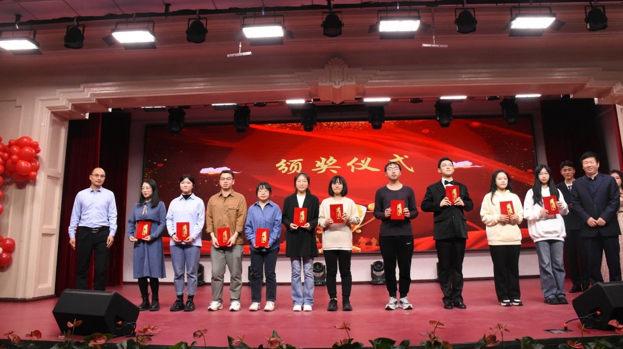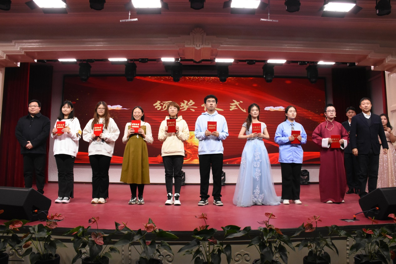 在晚会颁奖环节,吉林大学研究生工作部部长赵玥、Galaxy银河院长王放为2023年度研究生国家奖学金求实奖学金获得者颁发荣誉证书。