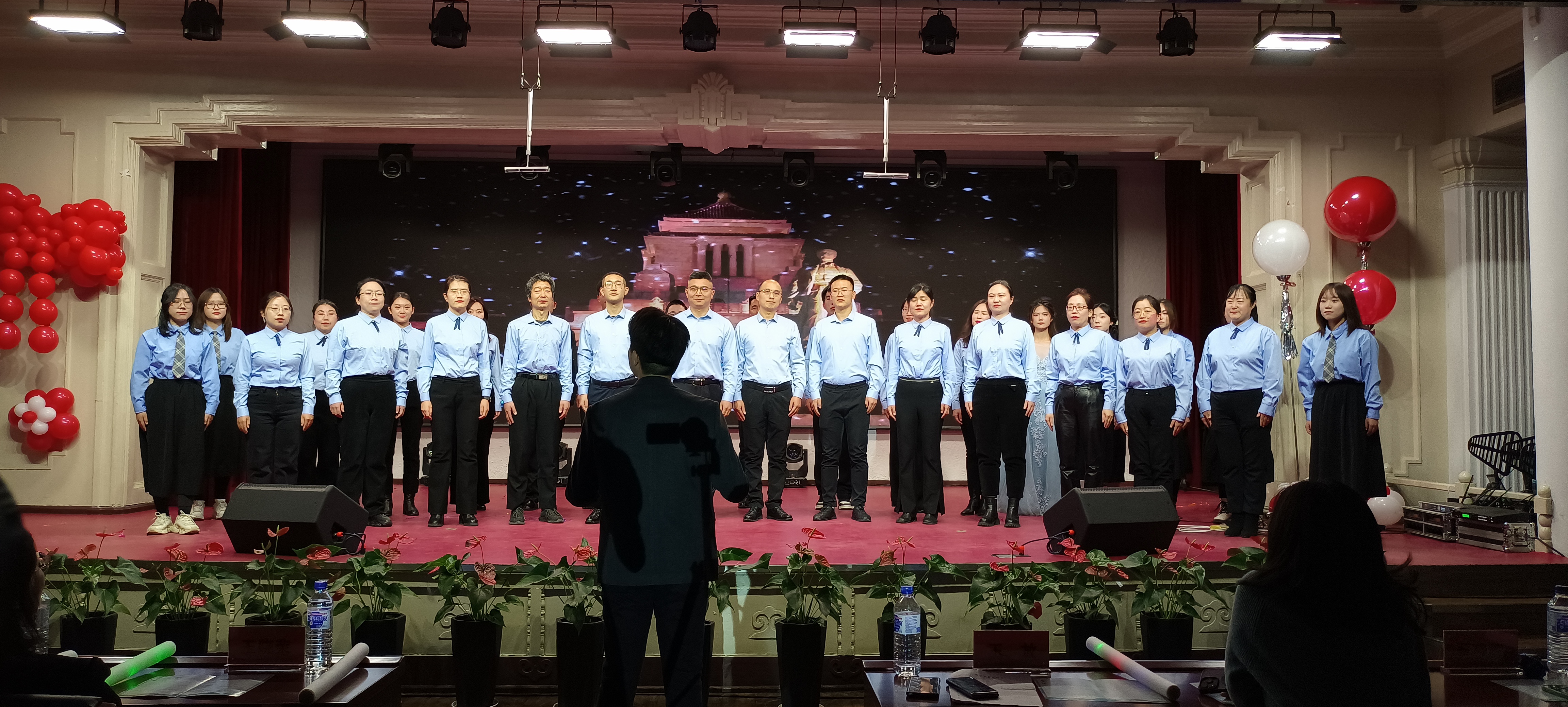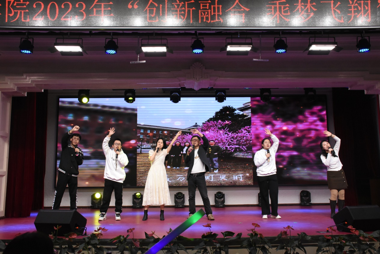 伴随着青春的旋律,在绚烂的灯光下,由我院青年教师何侃、吕东芳和2023级新生代表共同演唱的开场歌曲《青春旋律》,拉开了晚会的序幕。