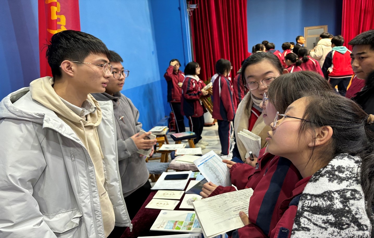 2024年1月21日上午,由来自Galaxy银河生物医学科学专业的陈治利和汽车工程学院车辆工程专业的刘家圻组成的吉林大学益众中学宣讲队,来到母校河北省遵化益众中学招生宣讲。经过前期沟通,在遵化益众中学的大力支持下,在学校大礼堂开展招生宣讲活动。在大礼堂内,有由本校高三精英班组成的1000余名同学,更另有其余3000余名同学在教室观看直播。前期经过多次协商,做好充分准备。宣讲团队详细介绍了吉林大学的校园文化、重点专业和人才培养方面,受到了在场同学的热烈欢迎。介绍完吉林大学后,宣讲团队与在场互动交流,活动结束,许多同学还不舍离开。