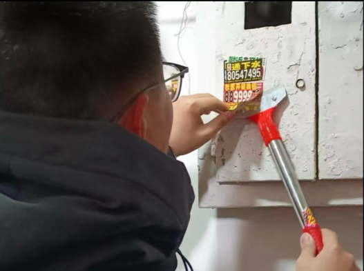 2024年1月26日至28日,姜海霖同学参加了清理吉林省长春市南关区自由大路社区内的小广告的活动。小广告不仅破坏了小区的美观,还给居民带来了困扰。有些小广告以具有误导性的文字和图片吸引人们的注意力,给居民带来了压力和困惑。清理小区内的小广告,能够使小区恢复安宁,让居民能够享受到更加宜居的环境。