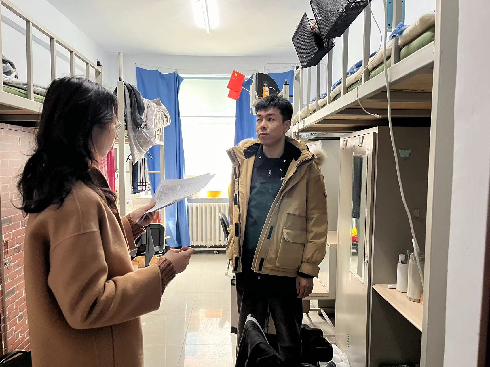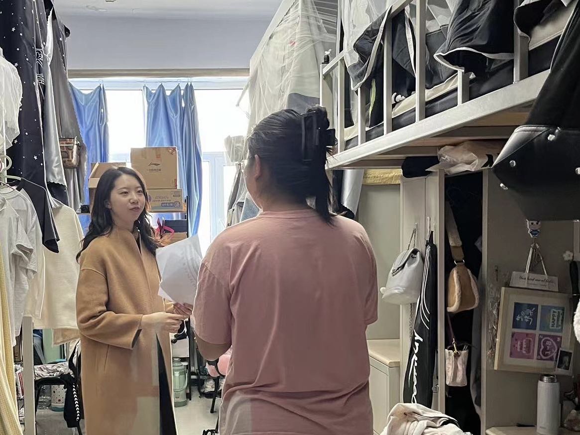 在检查过程中,孙老师提醒研究生们要注意用电安全,绝对禁止使用违禁电器。检查还包括查看是否存在违规存放电动车、非法充电行为以及离寝时未断电的问题。此外,老师还向同学们强调了在宿舍堆积存放废旧书籍、纸箱等易燃物品的危险性,并明确禁止在寝室内抽烟或进行任何明火行为。同时,也提醒同学们要注意保持寝室卫生,营造一个安全舒适的居住环境。同学们都表示会积极遵守学校相关制度。
