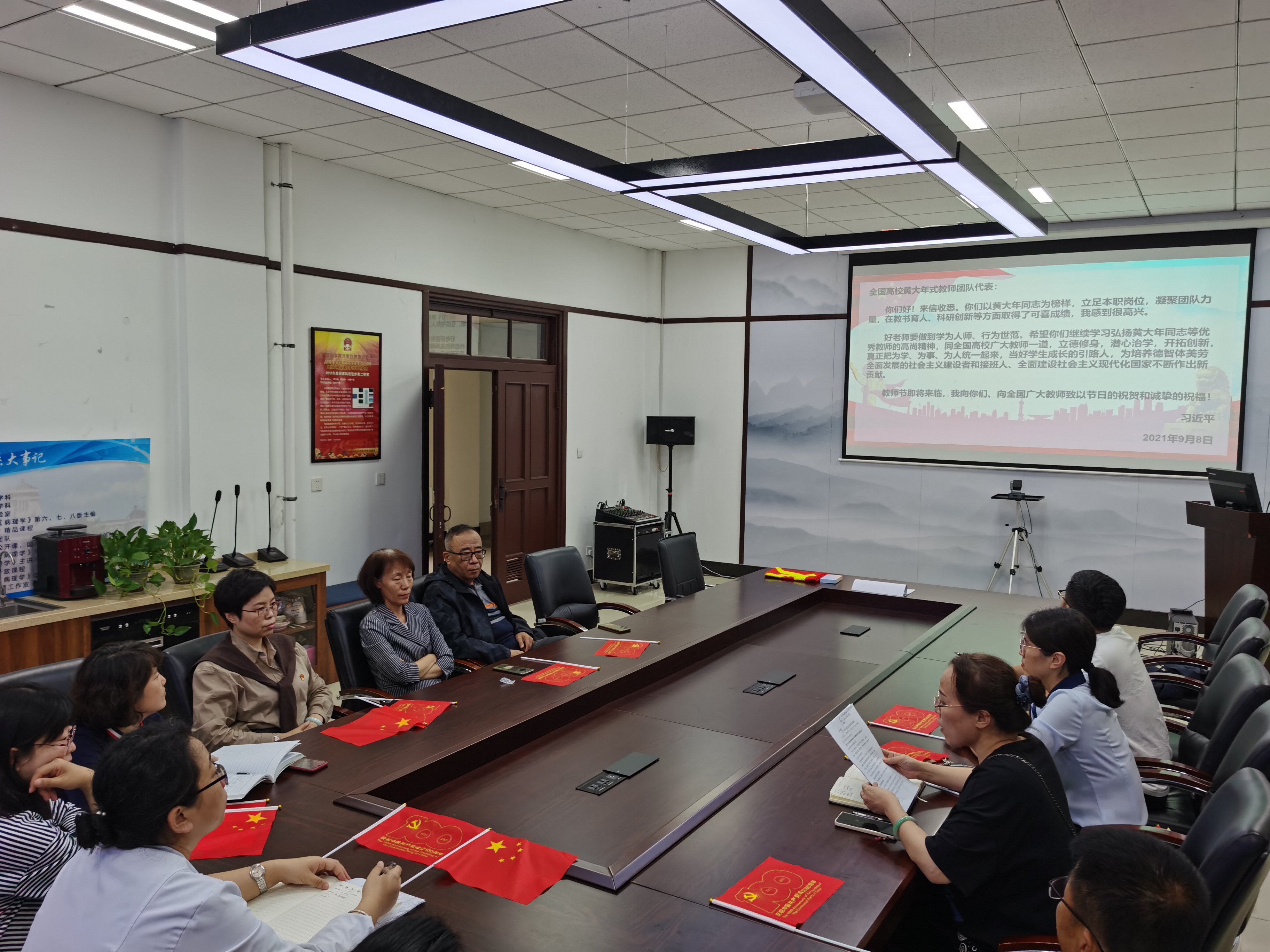 会上,支部书记带领大家学习了《习近平总书记给全国高校黄大年式教师团队代表的回信》。习近平总书记在回信中对广大教师提出了殷切期望,指出“好老师要做到学为人师、行为世范”“要立德修身,潜心治学,开拓创新,真正把为学、为事、为人统一起来,当好学生成长的引路人”。支部党员教师们深受鼓舞,纷纷表示要大力弘扬黄大年精神,以大年老师为榜样,立足本职岗位,不忘初心,牢记教书育人的使命,以更加饱满的精神状态和优异的成绩回报习近平总书记的深情嘱托和殷切期望。