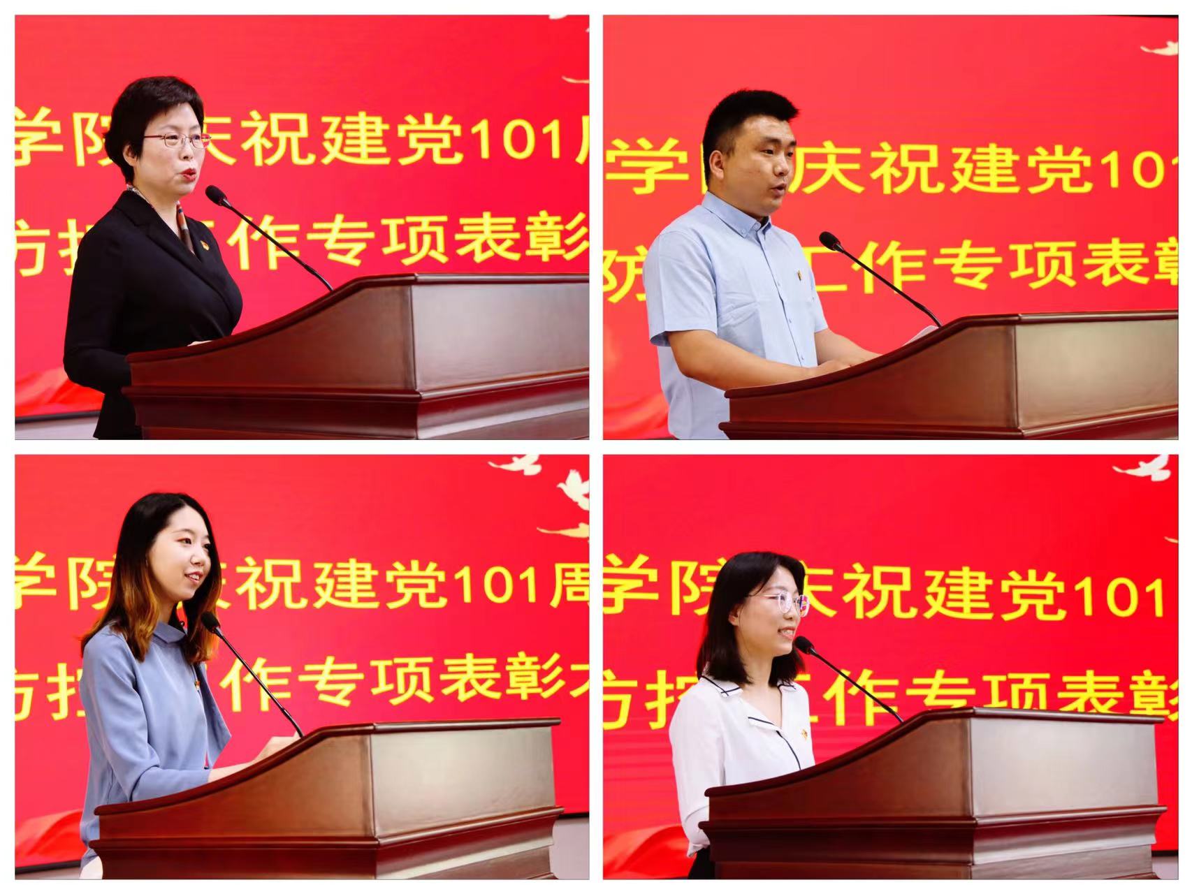 为弘扬伟大建党精神,凝聚学院奋进力量,充分发挥先进典型作用。2022年6月17日上午,学院在基础楼二楼报告厅隆重举行庆祝中国共产党成立101周年暨疫情防控专项工作表彰大会,以表彰在本次疫情防控校园封闭和过渡期管理期间表现突出的集体和个人,学院全体教职工及学生约三百余人以线上线下相结合的方式参会。大会由学院党委副书记曹国丽同志主持。