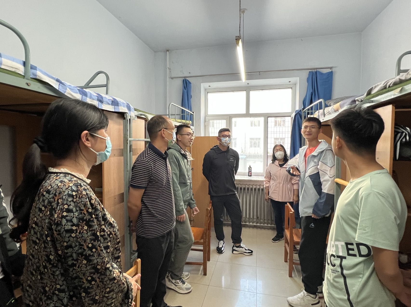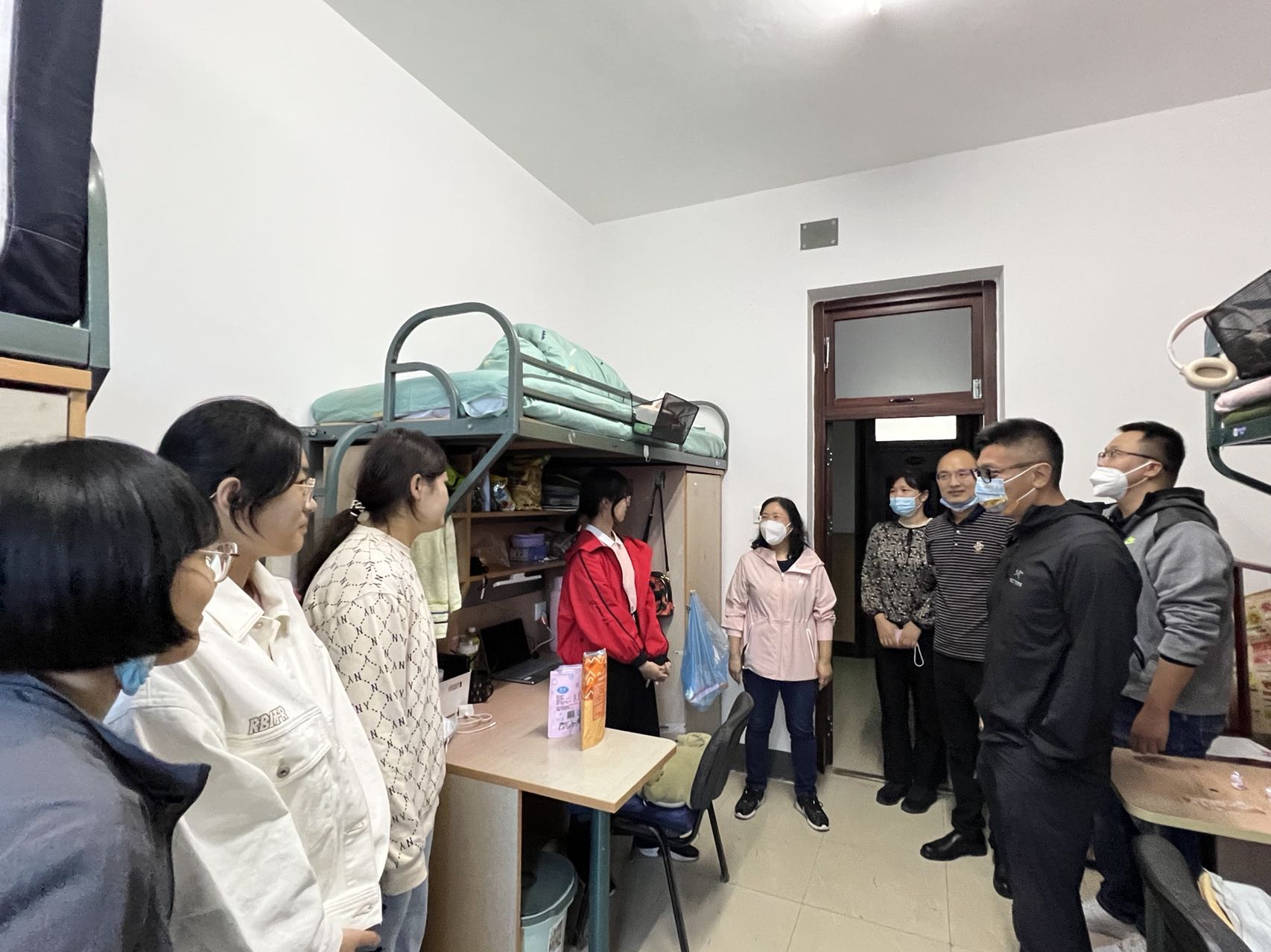 学院领导们悉心查看了新生的住宿环境,与同学们亲切交谈,逐一询问了新生家庭情况、来校适应情况和报考情况,对于同学们提出的关于学习生活上的问题,给予了耐心细致的解答,并勉励大家做好生涯规划、互相关心帮助、营造良好的学习氛围,养成健康的生活习惯。不断丰富充实自己,成为祖国的栋梁之才。最后学院领导亲切叮嘱同学们加强自我防护,积极配合学校疫情防控工作。面对学院领导的关心和问候,同学们纷纷表示感受到了学院的温暖,并对今后的学习生活充满期待和信心。
