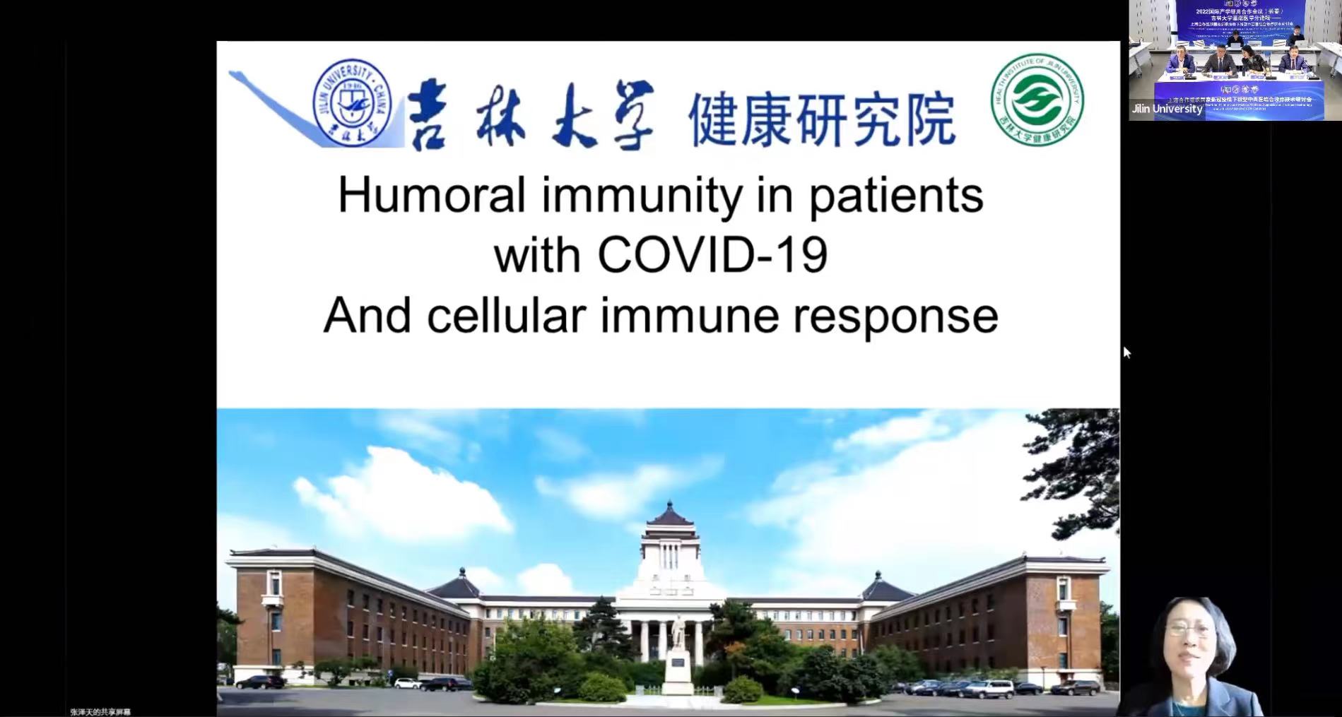随后,荷兰莱顿大学医学中心的庞宝旭副教授、加拿大健康科学院院士、阿尔伯塔大学李新民教授、俄罗斯巴什基尔国立医科大学哈萨诺娃教授、韩国全南大学丁明镐教授、吉林大学中日联谊医院副院长杜建时教授和吉林大学健康研究院院长李凡教授分别围绕新冠病毒药物作用机制以及新冠病毒的免疫学特征等最新研究成果与参会师生分享交流,让大家对新冠病毒的防治有了更加深刻的体会。