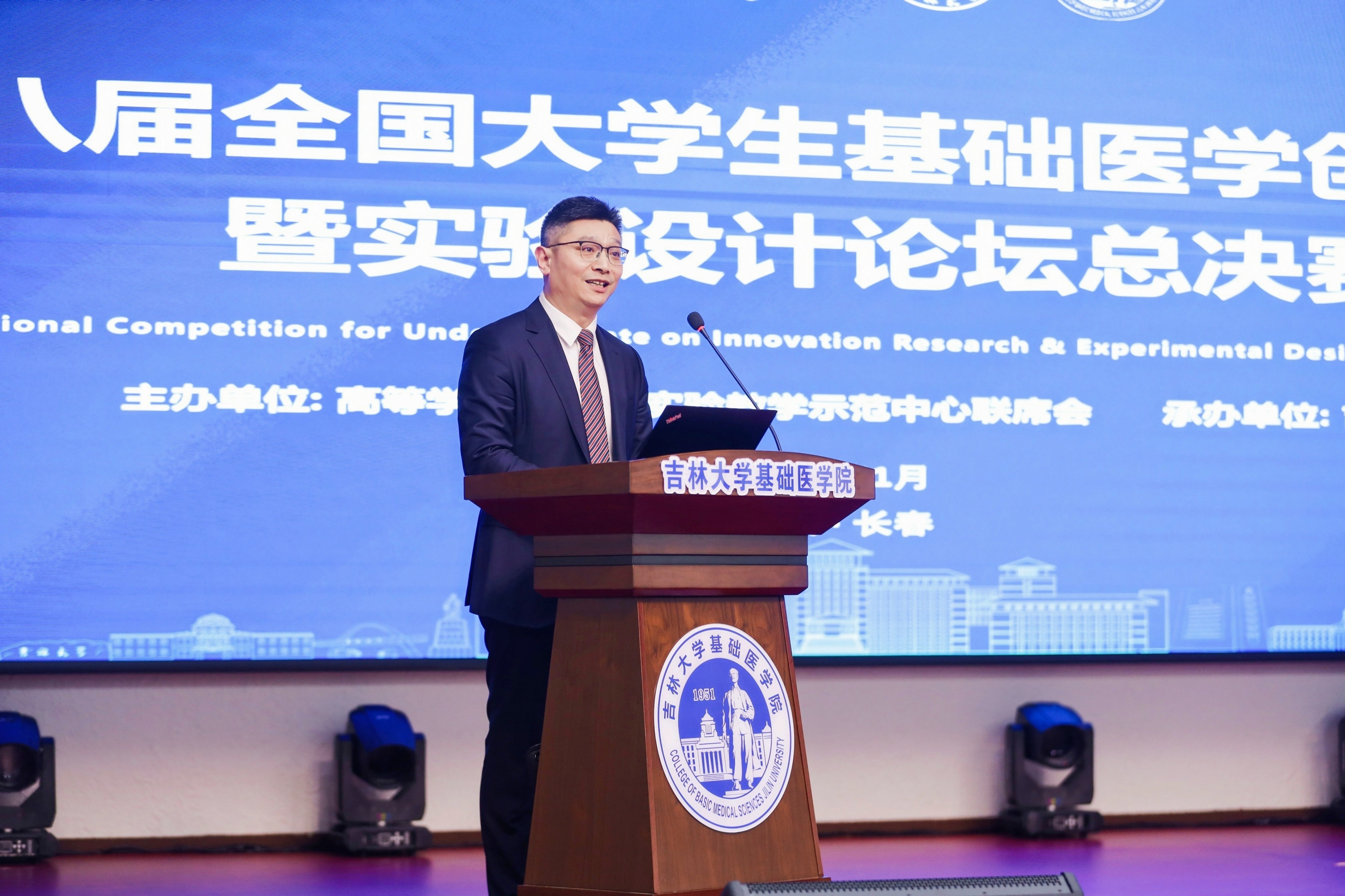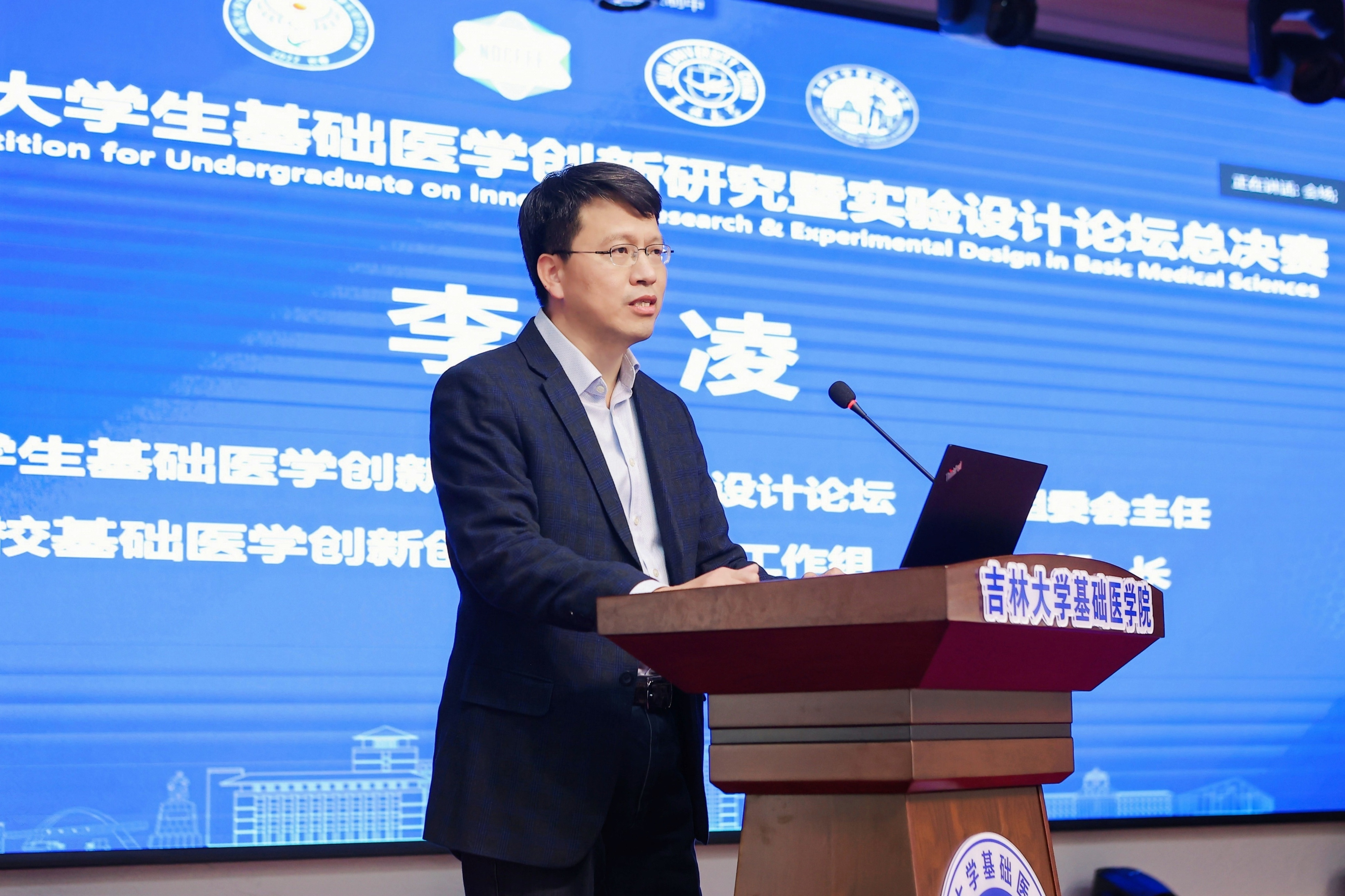 全国大学生基础医学创新研究暨实验设计论坛组委会主任、高等学校基础医学创新创业协同育人工作组组长、南方医科大学李凌教授做决赛总结致辞。他首先向吉林大学姜治莹书记对本届大赛的大力支持表示衷心的感谢,并对承办本届总决赛的吉林大学和Galaxy银河师生们付出的辛勤劳动给予了高度认可。同时,他总结了在前七届大赛基础上,本届总决赛的三大亮点,即首次以线上直播形式开展、首次以线上线下相结合方式进行评审监督、首次增开法医学、中医药、预防医学赛道。