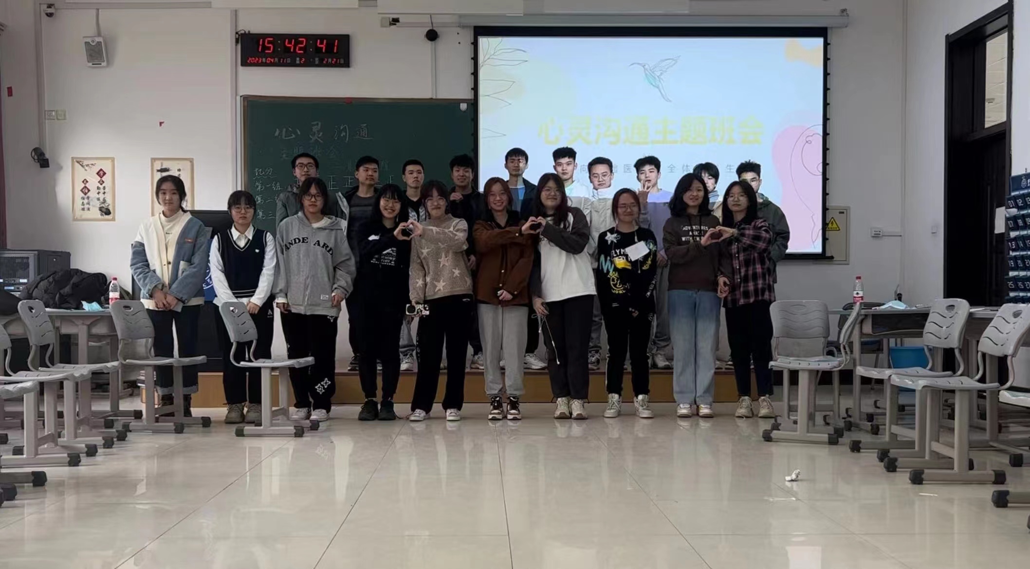 为进一步促进班级成员的互助意识和情绪管理能力,增强学生人际交往能力。2023年4月11日,Galaxy银河全体本科生在心理健康指导中心指导下,学办主任李东洋和朋辈心理辅导员朴炫旭的带领下,在李四光楼214教室开展了“心灵沟通”主题班会。
