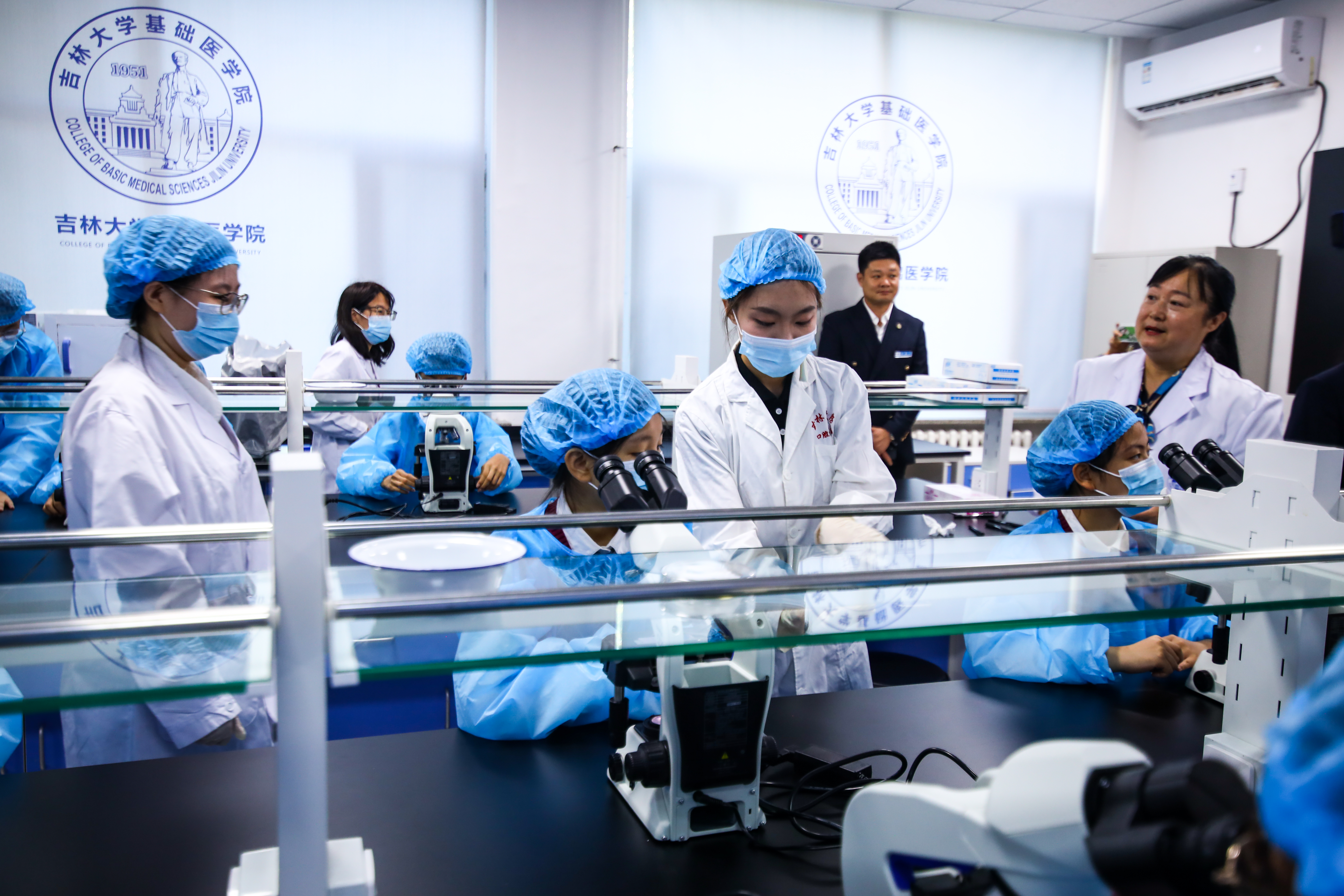 随后的签约仪式上,在双方领导的见证下,Galaxy银河院长王放分别与长春南湖实验中学校长刘卓娟、长春南湖实验中海小学校长杨波、长春市第一实验银河小学校长田娟签署合作框架协议。赵国庆副校长与王祖良理事长共同为“Galaxy银河—吉林省南湖教育集团实践教学基地”揭牌。来自长春南湖实验中学、长春市第一实验银河小学和长春南湖实验中海小学的30名中小学生,在Galaxy银河老师的指导下,开展了“口腔中细菌的检查”“手指细菌的检查”两项科学实验,孩子们亲自动手,仔细观察,了解生物和医学相关的知识,培养良好的卫生习惯。通过新颖、趣味、多样化的科学实验活动,让科学真正走进孩子们的生活,探索感受科学研究的奥妙。