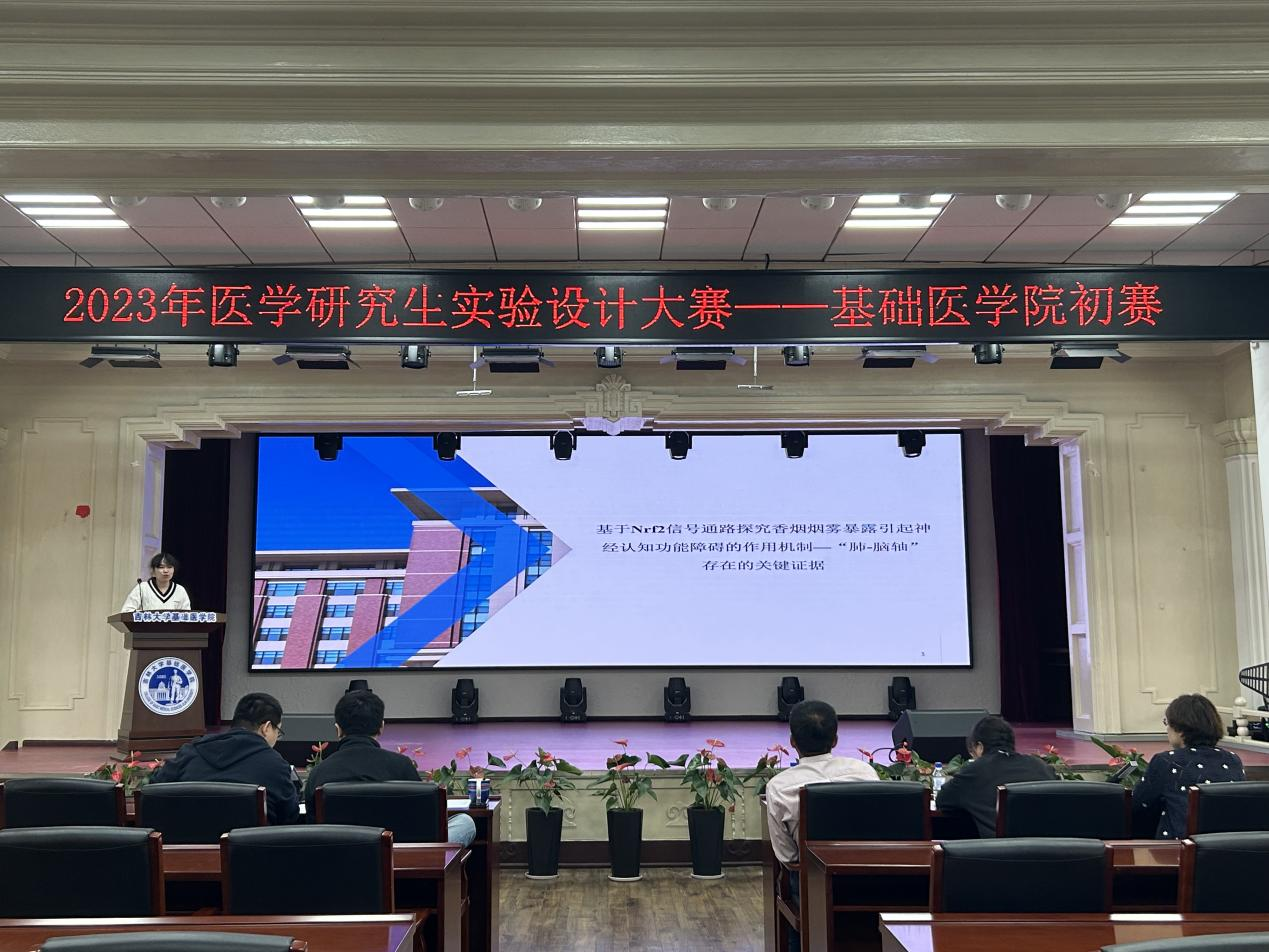 为落实全国研究生教育会议及吉林大学医学教育创新发展推进会议精神,强化科教协同育人,提升研究生创新精神和科研能力,根据“吉林大学白求恩医学部2023年医学研究生实验设计大赛”的通知要求,我院于2023年10月13日在二楼报告厅举办了“2023年医学研究生实验设计大赛初赛”,邀请我院池光范教授、黄红兰教授、李冬教授、何侃教授、张丹丹教授担任评委,比赛由学院副院长李洪岩教授主持。