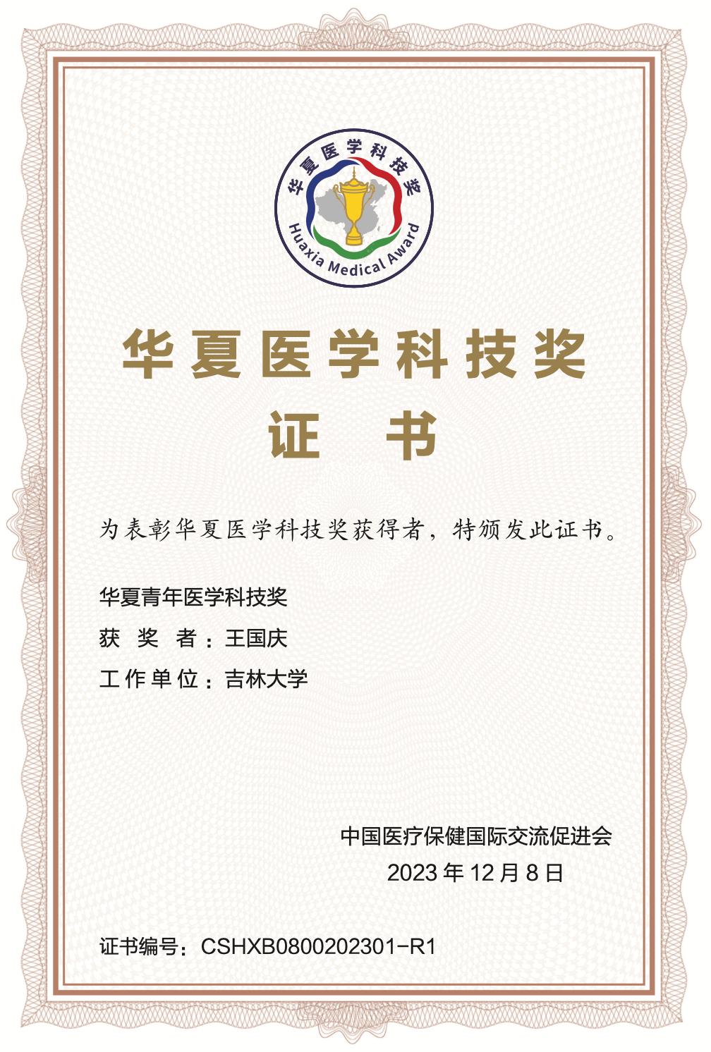 12月8日,2023年度华夏医学科技奖正式公布,Galaxy银河王国庆教授荣获华夏青年医学科技奖,是首次获此殊荣的15位青年学者之一。