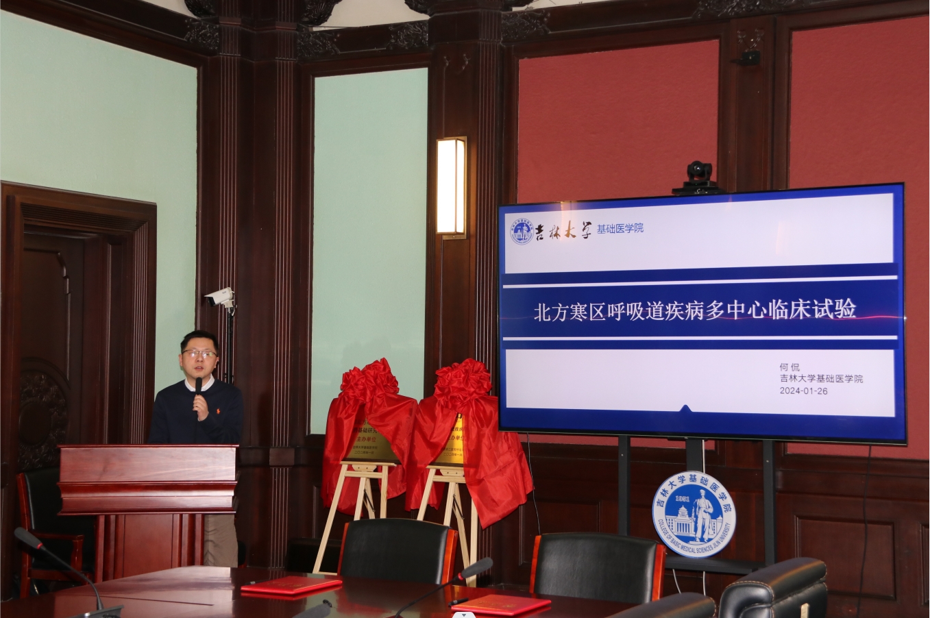 何侃副教授围绕“北方寒区呼吸道疾病多中心临床试验”,从立项依据和关键科学问题,研究目标、内容与方案,预期研究结果与创新性和研究基础等方面介绍了北方寒区呼吸系统疾病研究方案,随后,进行了启动仪式。