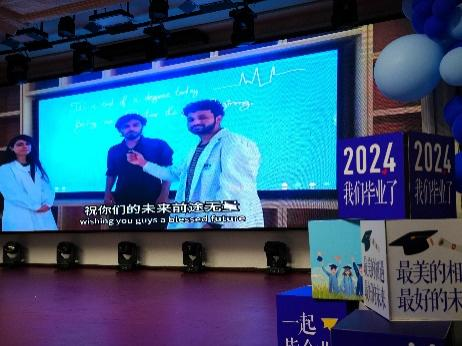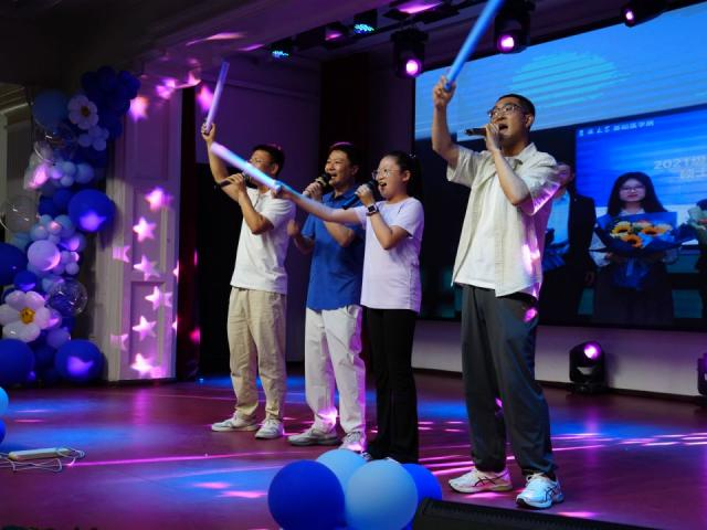 毕业晚会在李东洋、孙佳钰、何侃、闫天昊四位老师与基础学子携手录制的暖场MV《起风了》中缓缓拉开序幕。