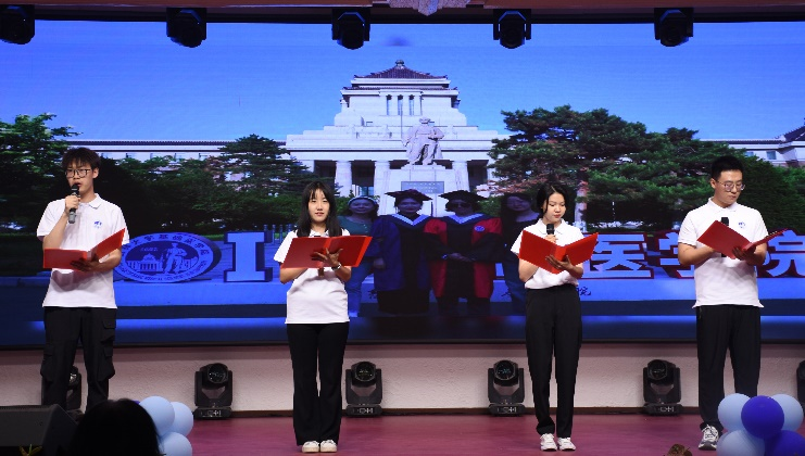 书页翻过,韶华逝去,六月末,傍晚的风声里盛夏渐进,声声离别中,稚鸟终将振翅离巢,飞往那无边的旷野与苍穹。为欢送2024届毕业生奔赴前程,6月20日晚,我院隆重举办“青春逐梦 情忆基础”2024年毕业晚会。吉林大学党委研究生工作部部长赵玥、吉林大学学生就业创业指导与服务中心副主任贾晓辉、国际教育学院副院长崔鲜花、国际教育学院副院长刘洋、白求恩医学部医学教育办公室副主任徐庆辉应邀出席,Galaxy银河院长王放、党委书记王晓荣、党委副书记李东洋、副院长李洪岩、副院长辛颖、副院长孙巍、副院长陈龙,以及各学系主任和师生代表共同观礼。