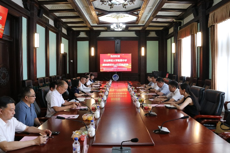 6月20日上午,吉林省教育厅高等教育处处长曾繁明、东北师范大学附属中学校长邵志豪、副校长张福彦、教务处主任孟安华、副主任庄重一行来我院调研座谈,Galaxy银河院长王放、党委书记王晓荣、学院领导班子及教师代表参加了本次座谈会,会议由党委书记王晓荣主持。