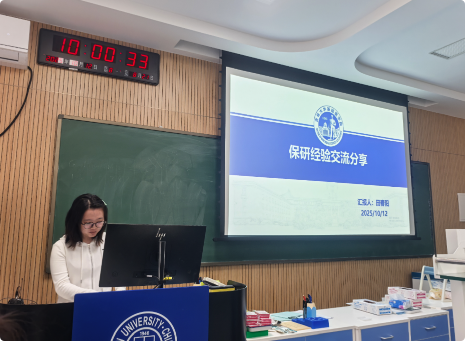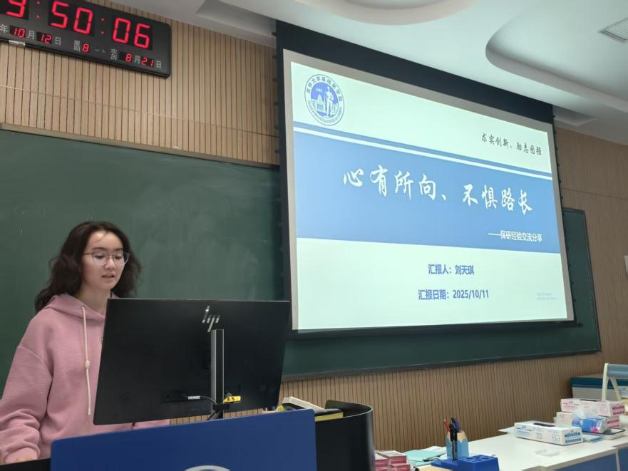 针对有意向留在本院直博的同学,刘天琪同学的分享很具参考价值。她详细解读了学院直博的申请条件、选拔流程与时间节点,让大家清晰掌握直博的具体要求。同时,她结合自身准备经历,分享了提升竞争力的方法:从如何提高专业成绩、培养科研能力,到导师沟通与面试要点。她还提到学院会继续为直博本院的学生提供优质科研平台,助力学生科研成长;师兄师姐互帮助为学术研究营造良好环境,让同学们对本院直博有了更全面的了解。