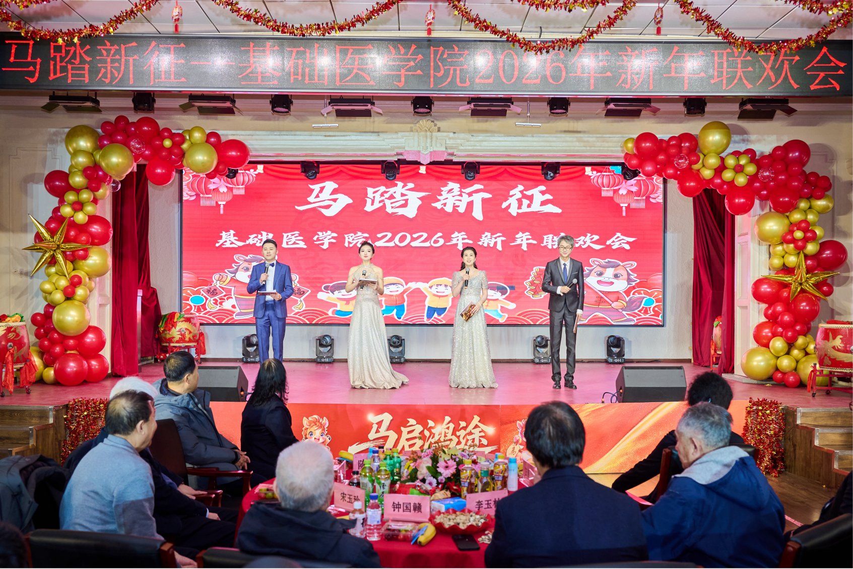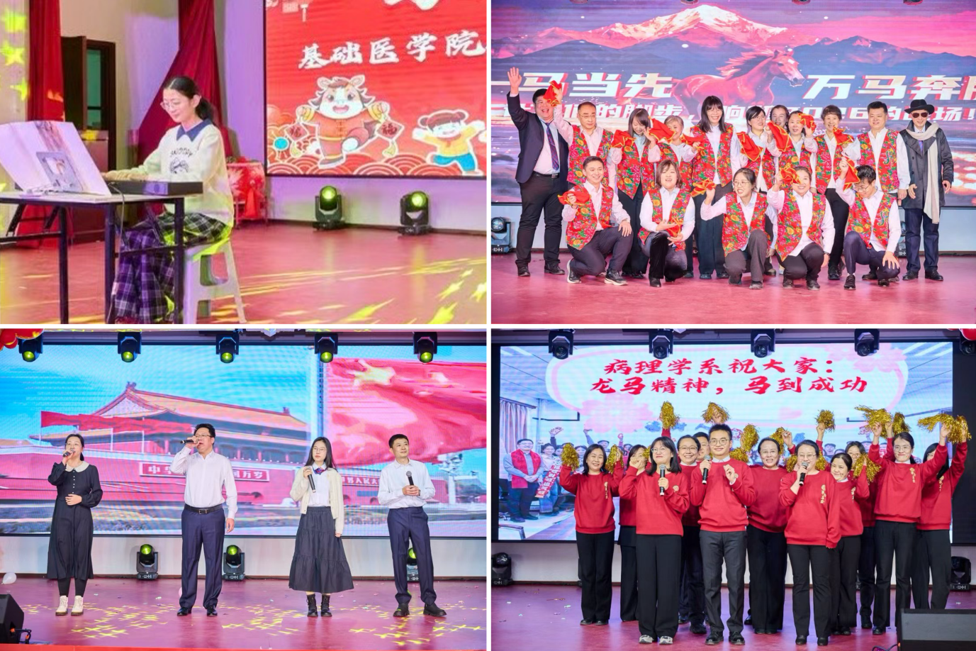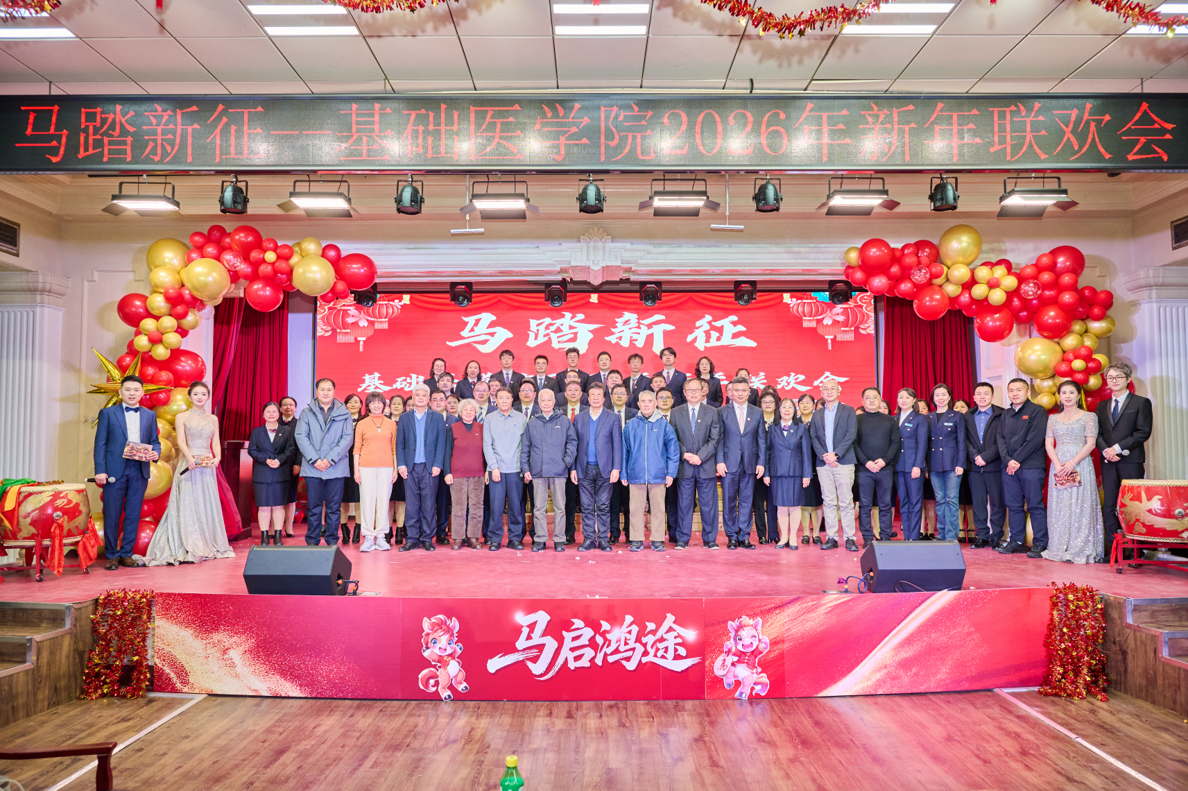 “凯歌高奏,不负育人使命;策马扬鞭,不负时代韶华。”联欢会在四位主持人铿锵有力的结尾词中圆满落幕。此次新春联欢会不仅是一场视听盛宴,更是一次凝聚人心、传承精神的盛会。回首2025,学院赓续红色血脉,深耕教学科研沃土,硕果盈枝;展望2026,全院师生将坚守立德树人初心,勇担新医科建设使命,在科研创新的道路上锐意进取,在人才培养的征途中笃行不怠,为建设中国特色、世界一流大学贡献Galaxy银河的智慧与力量,共同书写更加灿烂的奋进篇章!