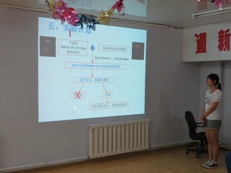 然后,肖月、李鑫、寇梦媛、刘佳林、郝旭作为科研组长就组内的课题总体思路及研究进展进行了汇报。她们从课题立项背景、主要研究目的、研究策略、实验进展及结果、下一步计划等几方面介绍了小组的课题进展情况,并谈了自己作为研究生到科研组小组长不同角色的体会。这个暑期科研训练让他们承担了多种角色---设计实验及指导实验的老师角色、查阅文献解决问题的研究生角色、快乐自豪的师姐角色。这些角色让她们深刻体会到作为老师的辛苦,也促使她们更多地思考如何努力自我解决面对的困难和问题。有的研究生谈到,以往自己一个人做实验时遇到困难就去问老师或别人,一旦成为组长就必须回答别人提给自己的问题,感觉成长速度加快了。这个假期虽然很累,但成长快乐着!