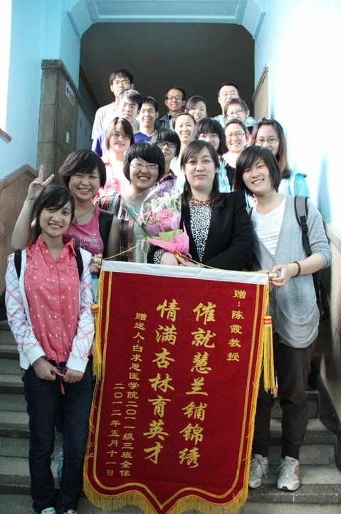 为响应白求恩医学院2012年文化节开展“尊师重道”系列活动的号召、进一步倡导尊师重道的良好风尚,近日,701103团支部部分成员来到白求恩医学院基础楼三楼药理学实验室探望吉林大学基础医学实验教学中心副主任、院长助理、博士生导师、701103班班主任陈霞教授。