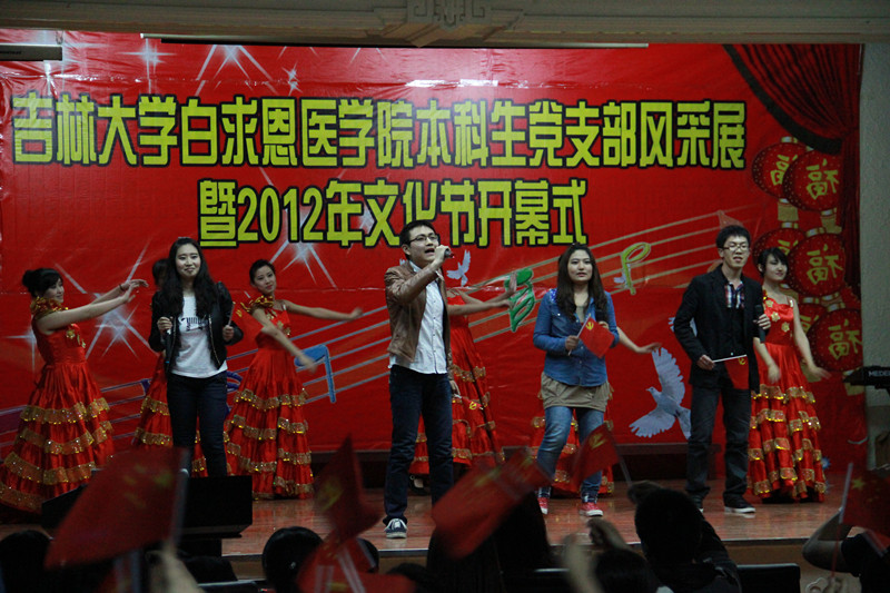 为进一步贯彻校党委关于在创先争优活动中深入开展基层组织建设年活动的具体要求,通过多样的校园文化形式,丰富同学的业余文化生活。4月20日晚,在吉林大学新民校区基础楼二楼多功能学术报告厅举行了白求恩医学院本科生党支部风采展暨2012年文化节开幕式。吉林大学白求恩医学院党委书记屈英和、关心下一代工作委员会主任孙汉臣、党委副书记费淑波、学生工作办公室主任吴剑锋、团委书记夏燕来、党务秘书王希、辅导员魏宇航及全体本科生党员、部分积极分子代表参加了本次开幕式。白求恩医学院本科生各党支部积极筹划、充分准备、立足创新,在开幕式当晚,以党支部为单位的一个个精彩节目展现了白医学子良好的精神风貌。