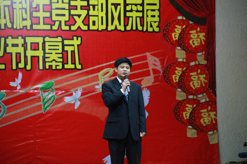 开幕式在国防生铿锵有力的军歌合唱声中拉开了帷幕。首先,屈英和发表开幕式致辞。他在致辞中强调要重视在文化节中展示我院学生风貌,进一步融洽师生关系,并且要在党支部风采展示中增强党支部活力,使每个党员在党支部建设中进步。随后,各年级党支部纷纷登上舞台,精彩的演出使场下掌声雷动,现场高潮迭起。本科生2008级第二党支部书记、2011年长春市十佳大学生、2011年吉林大学十佳大学生李梓萌、党员张逸带来的《红旗飘飘》激荡昂扬,婉转的旋律与动情的演绎反映出新时期青年党员内心的执着与自豪;2009级第一党支部党员带来的诗朗诵《毛泽东词两首》,诵出了白医学子指点江山的豪情壮志;由2011级第一党支部带来的《十送红军》将我们带回了那个战火纷飞的年代;2010级第一党支部组织委员梁豪君,入党积极分子周艳带来的双簧《大学生活》在令人捧腹的同时体现了新时代青年党员在校园中的激情与活力;2007级第一党支部党员张志博、陈俊阳以一曲《Tonight I Feel Close To You》唱出了心底的律动;2011级第二支部党员崔倪等人带来的《我相信》以强劲的节奏、澎湃的气氛震撼着到场的观众;无论是由2007级第三党支部书记丛丹等人一同带来的热辣火爆的《最炫民族风》,还是由2008级第一党支部书记沈璐妍、党员韩梅带来的轻柔曼妙的双人舞荷塘月色,同样赢得了台下观众的阵阵喝彩。