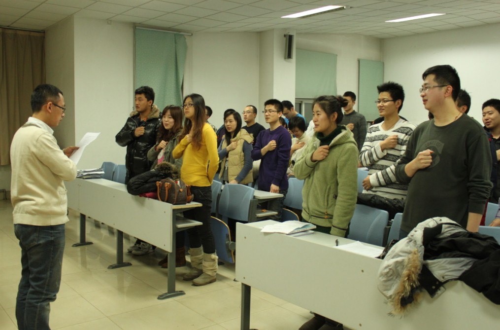 会上,学习部长王鹏硕宣读《国家教育考试违规处理办法》、《吉林大学学生手册》有关规定。原学生会主席刘兴任率领全体同学进行了“诚信”宣誓。团总支书记兼党支部书记杜心静代表全体学生签订《诚信考试承诺书》。