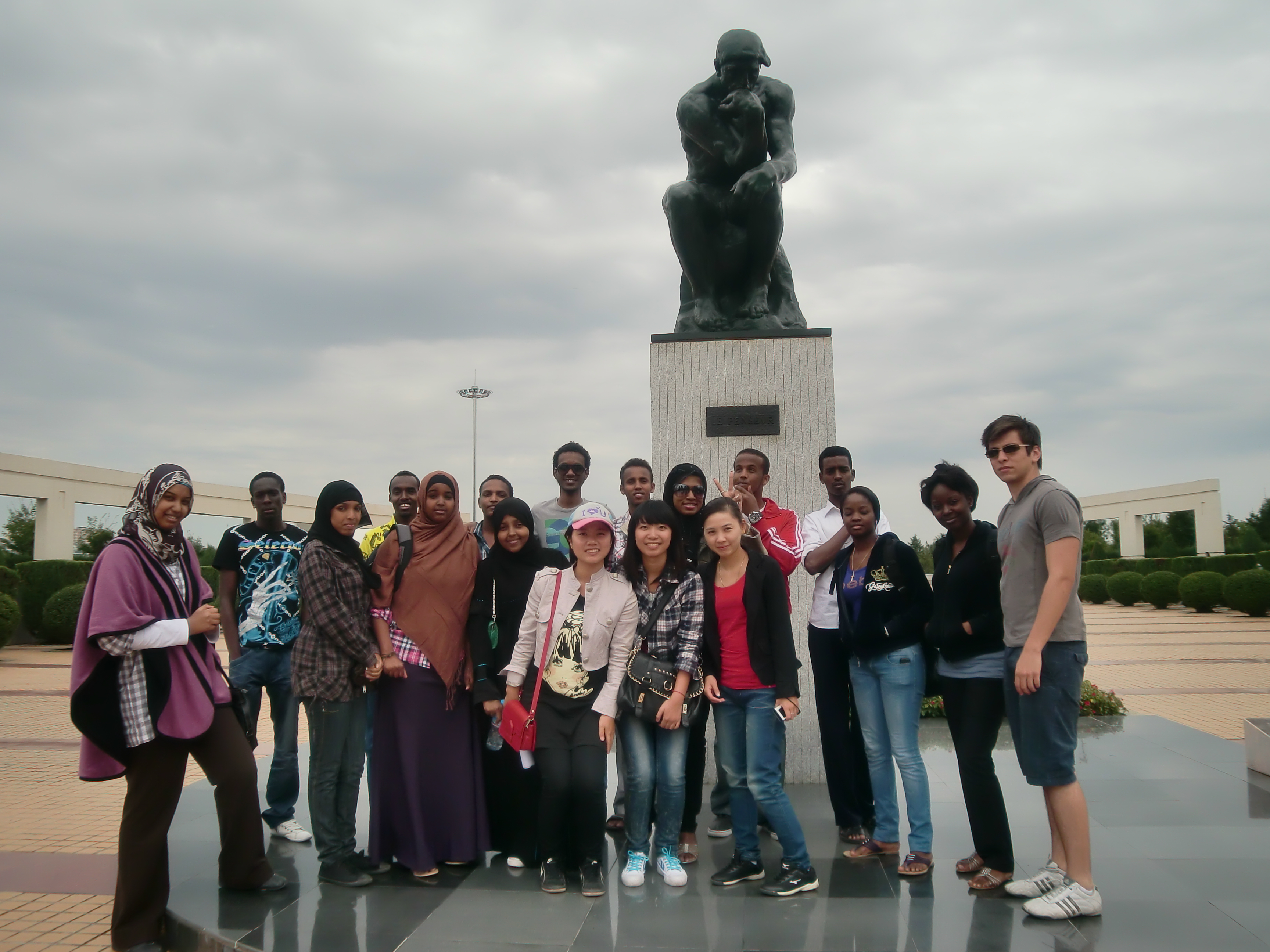 最后,同学们走到了象征着五大洲人们高举和平旗帜,喜迎美好春天,为共同的繁荣和幸福走在一起的极具震撼力的主题雕塑前合影,并结束了这次愉快的游览。