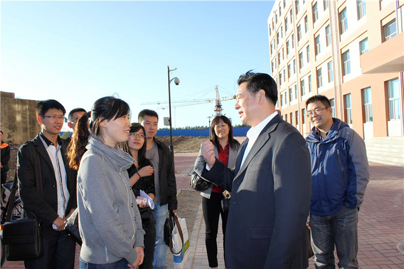 9月18日下午,吉林大学校长李元元、副校长张向东一行来到基础园区一公寓,察看学生住宿情况并看望新生。