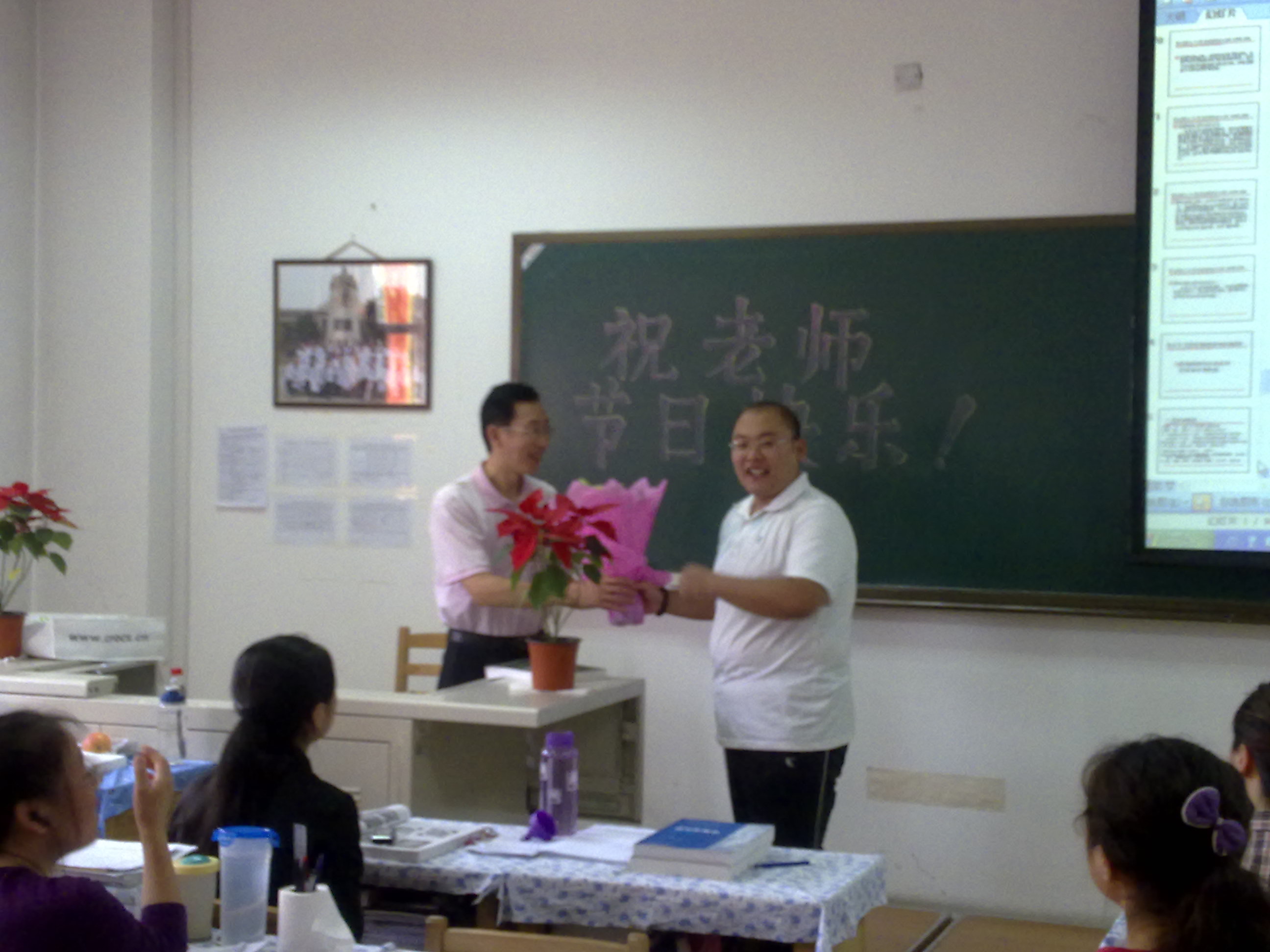 在教师节这个特殊的节日里,白求恩医学院研究生会、学生会倡导全体同学一起表达对恩师的无限感激之情,号召同学们为这些日日辛苦工作的传道者送上一份节日的温馨祝福。教师节当天,白求恩医学院各教室的同学均为当日的任课教师送上了一束精美的鲜花,同时也献上了学子们的崇敬之情。