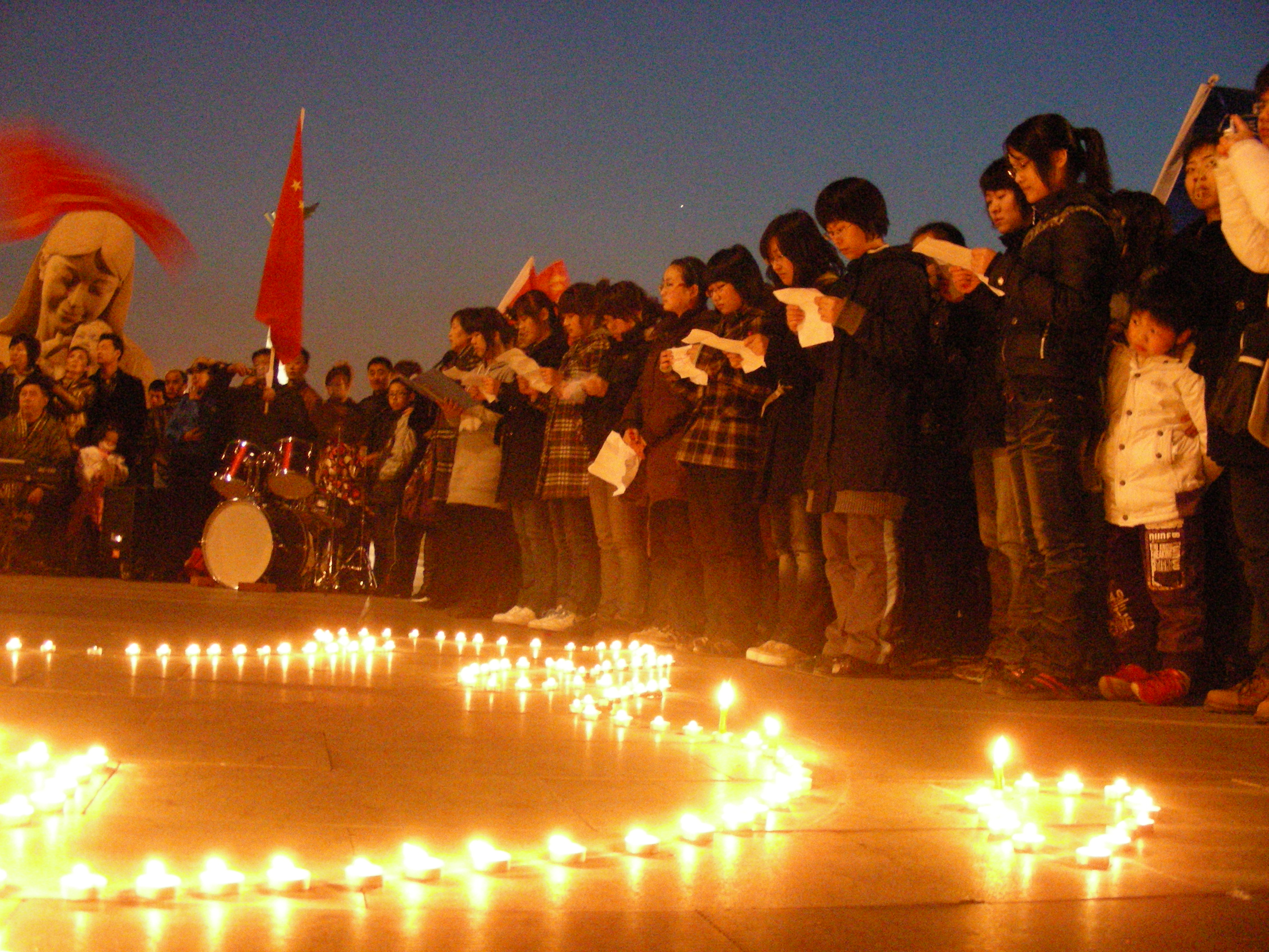 4月22日晚六点半,白求恩医学院700802团支部在文化广场举办“携手同心,福佑中华,用心点燃希望,让爱播撒人间”为西南五省和青海玉树祈福活动。
