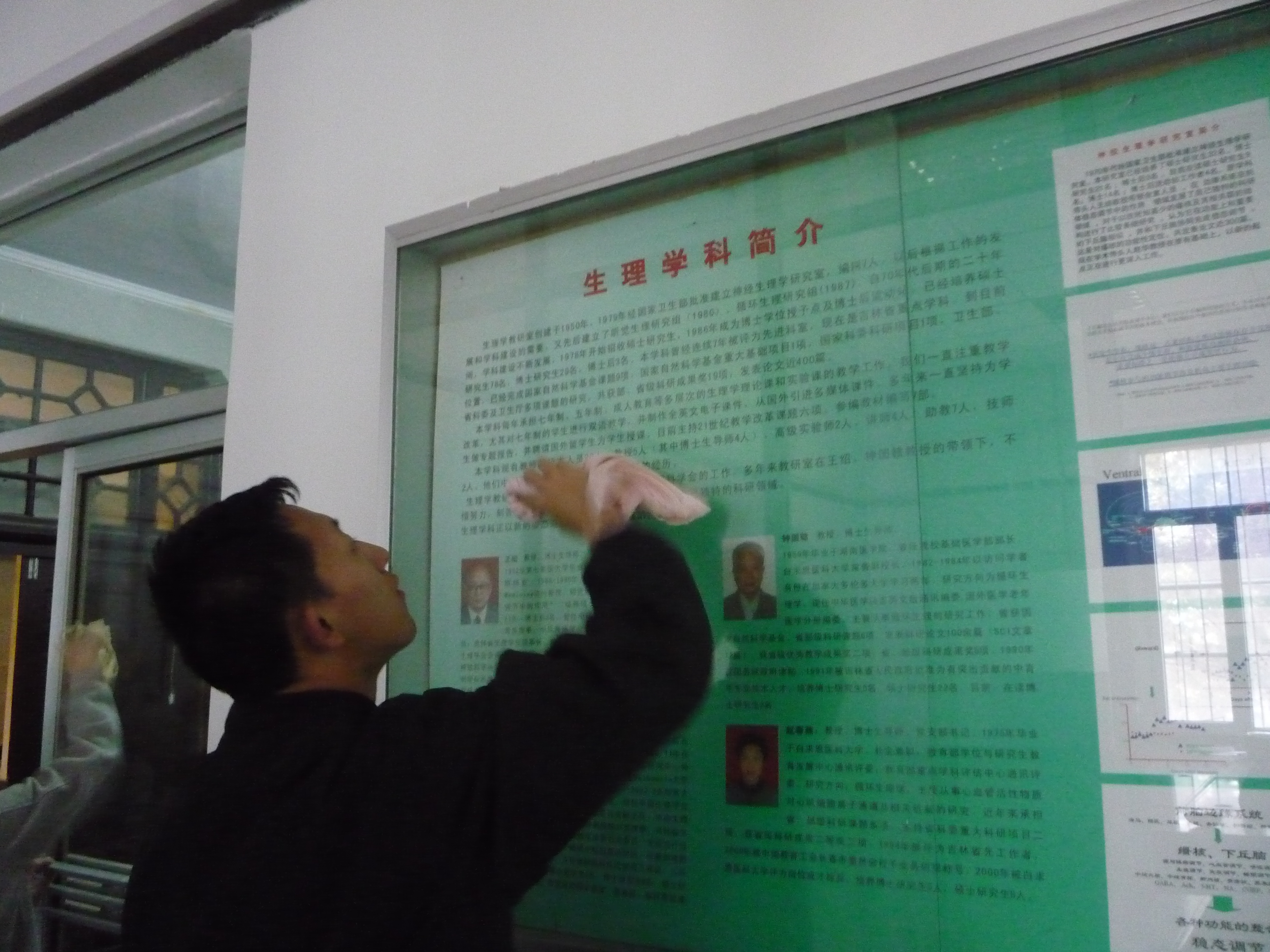近日,白求恩医学院700804团支部举办“承尊师美德,建师生之谊”主题团日活动。当日下午1时30分, 700804团支部全体同学义务清扫生理学学系,从玻璃窗到地脚线,认真打扫,不留一点死角,在每一位同学的努力和配合下,整个学系环境焕然一新。在场的老师对同学们不怕累不怕脏的细心和耐心赞赏不已。