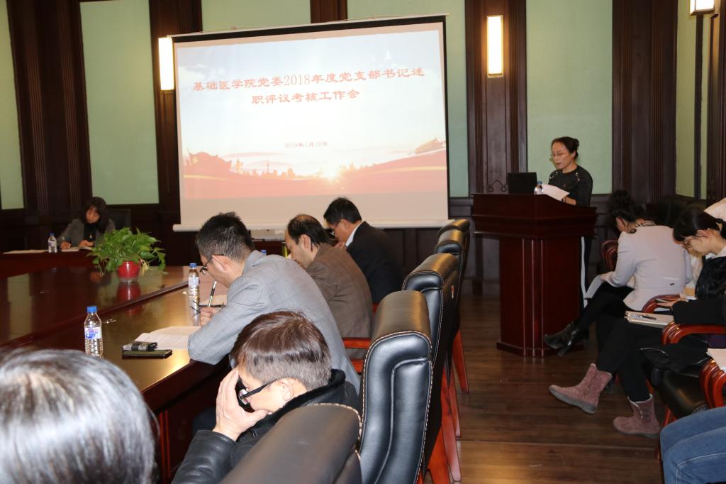 首先,参加述职评议考核的10位党支部书记分别围绕“做法成效”、“存在问题及原因”和“下一步工作打算”对过去一年内的履职情况进行述职发言。10位党支部书记实事求是的总结了自己的成绩,梳理出抓基层党建的特色工作,查找出个人履职尽责方面存在的差距,并有针对性地提出解决问题的具体办法。学院党委书记郑爽进行了“一对一”点评,郑书记对各支部书记一年来取得的成绩给予了充分肯定,并就下一步如何改进和增强党建工作以及提升党支部工作亮点和特色提出明确要求。