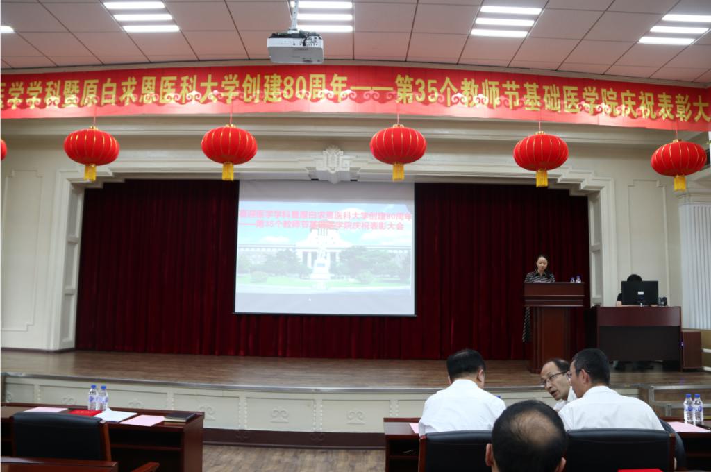 为庆祝建国70周年,喜迎吉林大学医学学科暨原白求恩医科大学创建80周年,激励广大师生践行白求恩精神,学习黄大年精神,在庆祝第35个教师节来临之际,9月9日下午,Galaxy银河在基础二楼报告厅举办了喜迎吉林大学医学学科暨原白求恩医科大学创建80周年——Galaxy银河召开教师节庆祝表彰大会。学院全体教职工参加了会议,会议由学院党委副书记、纪委书记曹国丽主持。