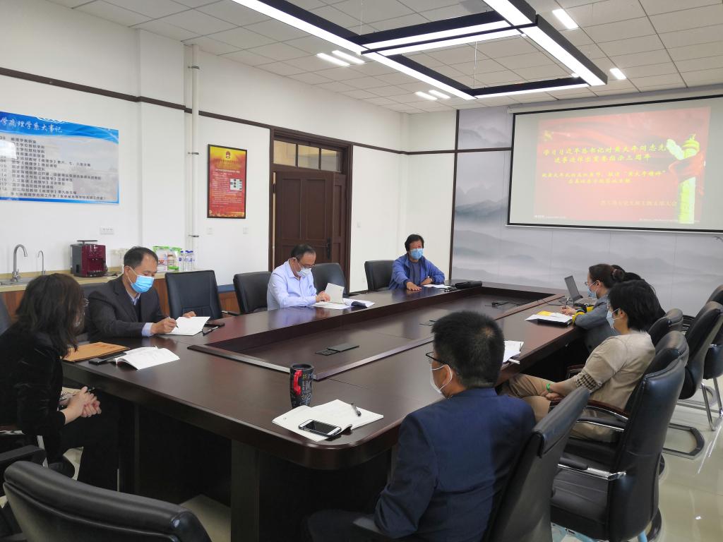 与会党员重温了2017年5月24日习近平总书记对黄大年同志的先进事迹作出重要指示。随后集体观看纪录片《生命,为祖国澎湃》。会上,党员同志纷纷结合自身的学习谈了体会和认识。辛颖老师表示,黄大年老师是一位有着世界格局的科学家,不为个人利益,为祖国做贡献。作为科研工作者,作为老师一定要向黄大年老师学习,虽然科研能力不及黄大年老师,但一定学习黄大年老师的执着精神,不断提高职业责任感和使命感。池光范老师表示,通过学习黄大年老师的事迹,提高自己了觉悟以及对工作的投入热情。尤其疫情防控期间,要持续做好自身及家人的防护,听从学校工作安排,在保证自身安全前提下,多为学校、国家做贡献。王医术老师表示,学习过程中体会到一切从自身做起,从本职工作做起。此次疫情,学系的老师对线上教学投入了极大的精力,看到了学系发展的空间,希望大家能将这种工作热情再投入到科研上。支部书记何旭表示,观看宣讲会后深受感动,黄大年老师坚持在病床前探讨学术,学生生活遇到困难他及时帮助解决,从做人做事上都要向大年老师学习。吕爽老师表示,黄大年老师说科学的竞跑是随时随地的,我们一定从自身做起,做好时时刻刻探讨科学的准备。李玉林老师回忆当时作为副校长曾经接触黄大年的情景:黄大年的爱国情怀是我们首先要学习的,同为高校教师的我们其实离他很近,他能够冲破重重阻力回到国内工作是我们每个人都敬仰的。从点滴做起是第二个我们要学习的,黄大年老师将办公室作为他的首要场所,他为学校、祖国的事业夜以继日的工作……甚至在病床前还在指导学生论文,这是这个时代最鲜明的榜样力量,都是我们要持续学习的。同为高校教师,我们和黄大年老师做一样的事,做老师,做科研,我们学习他,就要从这一点一滴做起,学习黄大年教书育人、敢为人先的敬业精神。