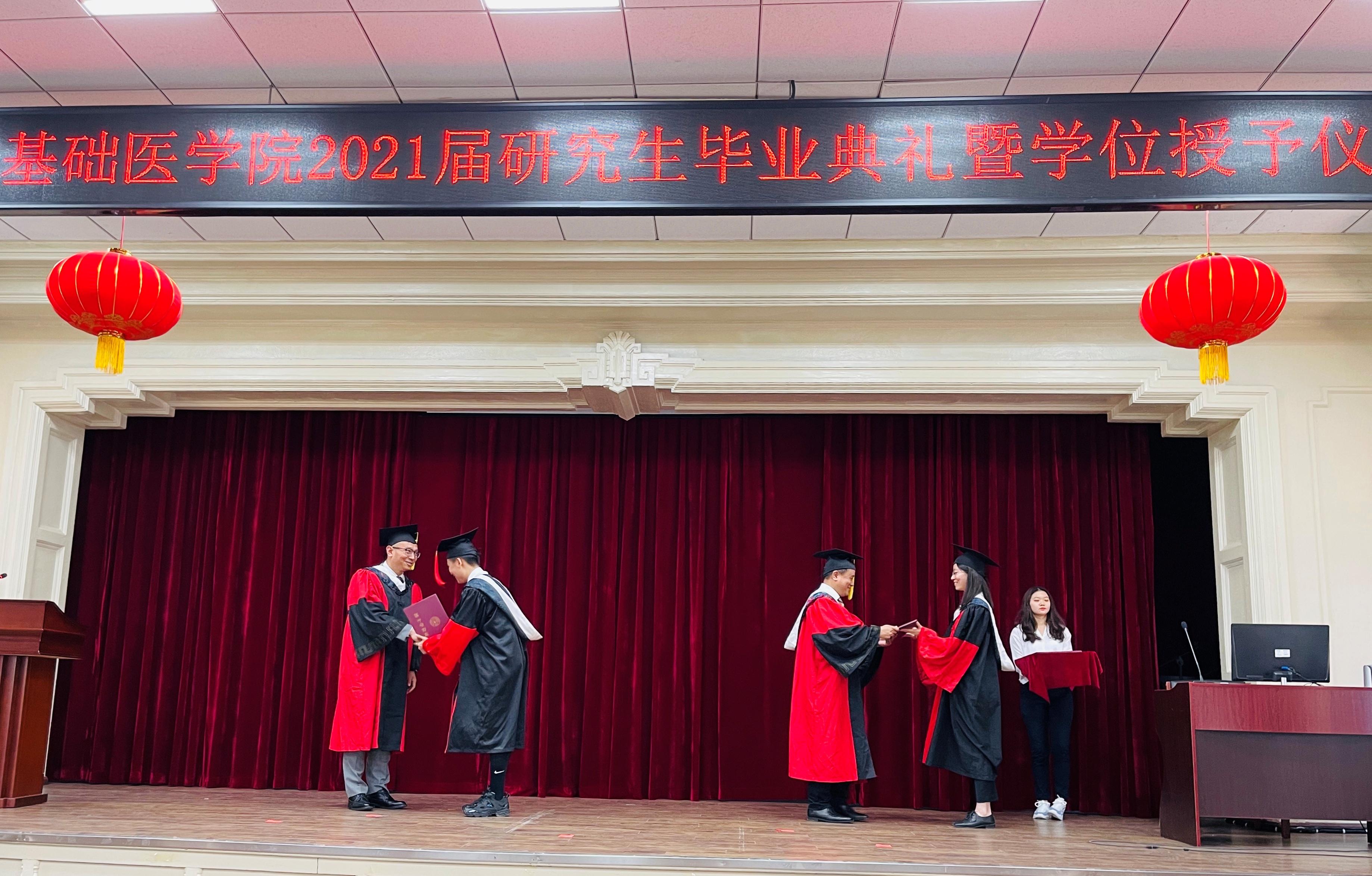 2021年6月23日上午,Galaxy银河2021届研究生毕业典礼暨学位授予仪式在Galaxy银河二楼报告厅隆重举行。院长王放、党委书记王晓荣及班子全体成员、基础医学学位评定分委员会主席孙连坤,各学系教研室主任、党支部书记、研究生指导教师、研究生办公室老师和全体毕业研究生出席。毕业典礼由副书记曹国丽主持。