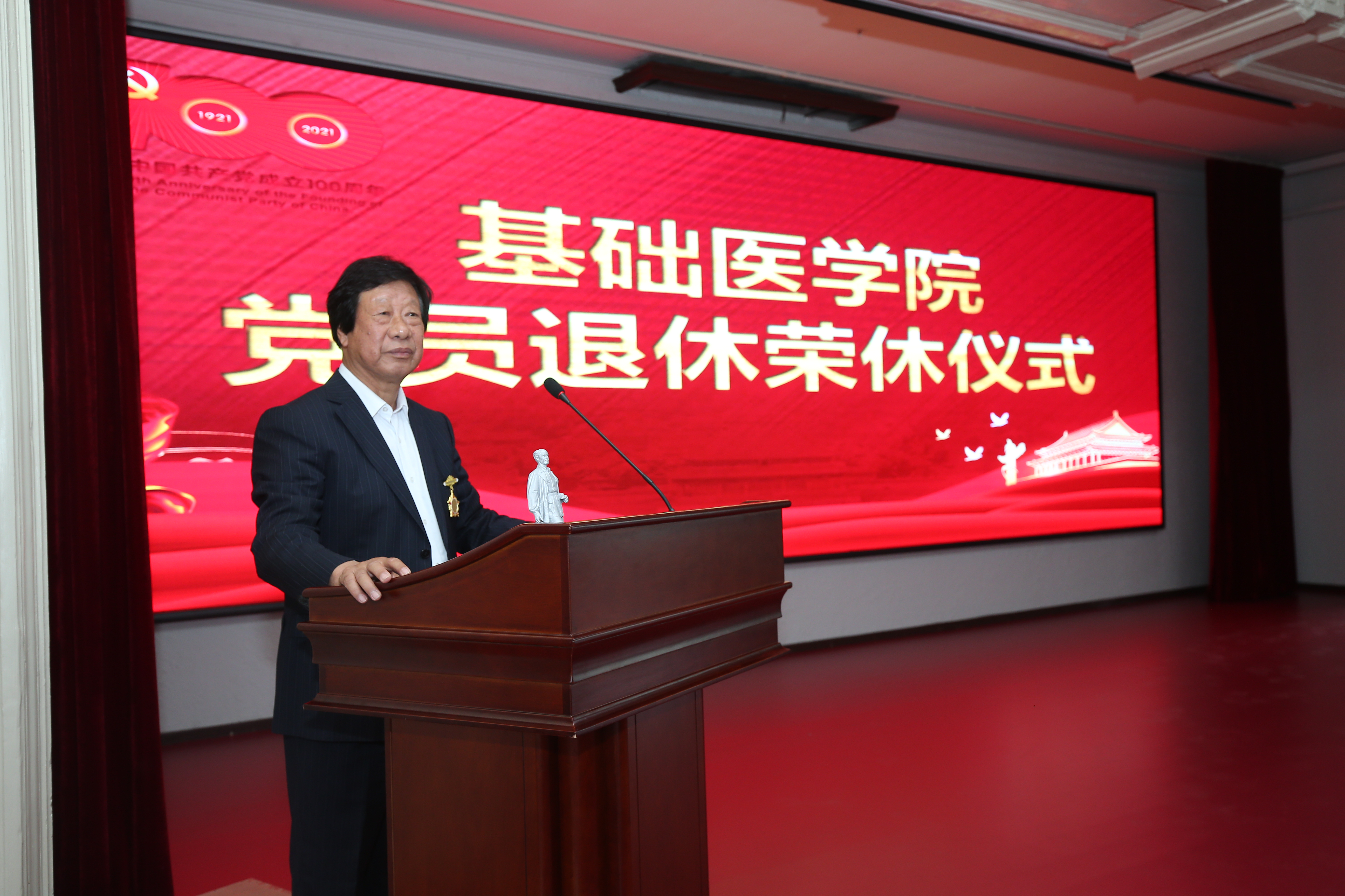 最后,赵国庆副校长讲话。他首先代表学校和学部向光荣退休的教师表示敬意和诚挚问候,他指出Galaxy银河作为吉大医学的重要组成部分,在70年的发展历程中,一批又一批优秀共产党员、专家教授,为学校、学部留下了宝贵的精神和思想财富,他们是基础学科的创建者,是医学事业发展的推动者,是白求恩精神的传承者,他们的奋斗史是吉大医学发展史的重要组成内容,也是吉大医学精神的重要组成部分。赵国庆副校长高度赞扬了以李玉林教授为代表的老专家们对中国医学高等教育、对医学事业发展做出的历史性贡献,他们是吉大医学的宝贵财富。这些教师是高尚师德师风的代表,希望基础所有的老师以他们为榜样,不断努力拼搏,为基础医学事业发展贡献力量。