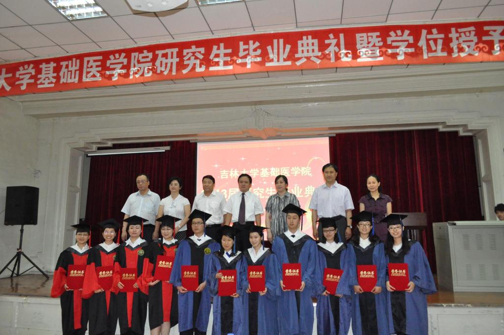 毕业典礼在庄严的国歌声中拉开了序幕。首先,副院长李一雷宣读毕业生名单。院长孙连坤、基础医学学位评定分委员会主席王丽颖为毕业研究生逐一执行“拨穗礼”,并颁发学位证书。之后,党委书记孙赵华宣读“校优秀毕业生名单”和“院优秀博士学位论文获得者及指导教师的表彰决定”,随后院领导和王丽颖为获奖的师生颁奖。