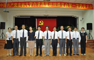 2009年8月19日13时30分,中共吉林大学白求恩医学院委员会第一次党员大会在基础二楼多功能厅召开。大会由学院常务副院长孙连坤主持,常务副校长兼学院院长李玉林出席了会议,学院教职工党员及学生党员共198人参加了本次大会,学院党外高级知识分子代表列席了会议。