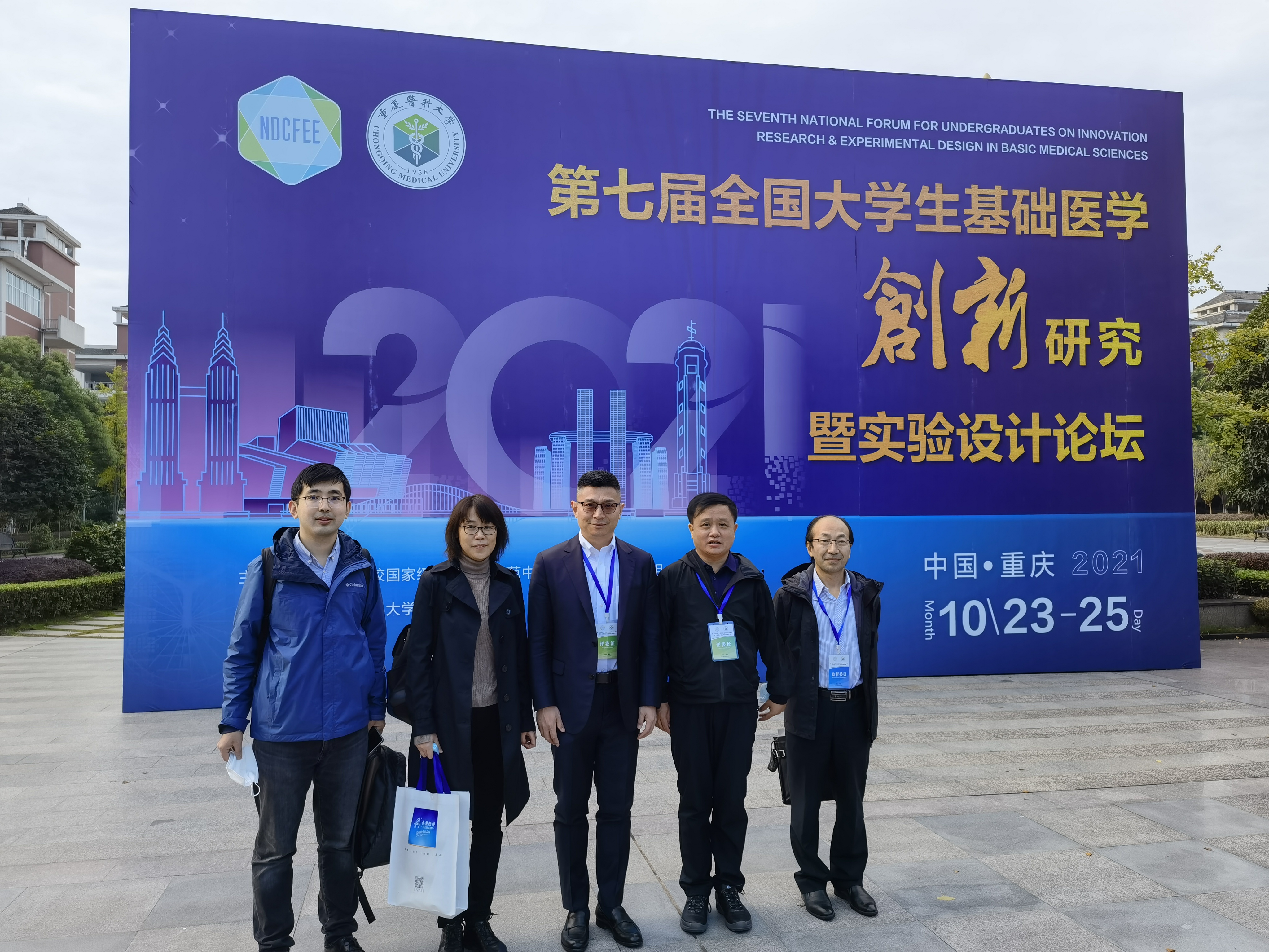 由高等学校国家级实验教学示范中心联席会基础医学组、高等学校基础医学创新创业协同育人工作组联合主办的第七届全国大学生基础医学创新研究暨实验设计论坛本科院校赛道分区赛于2021年10月23日至25日在重庆举行。我校选派的6支代表队全部晋级全国决赛,获一等奖4项、二等奖2项。