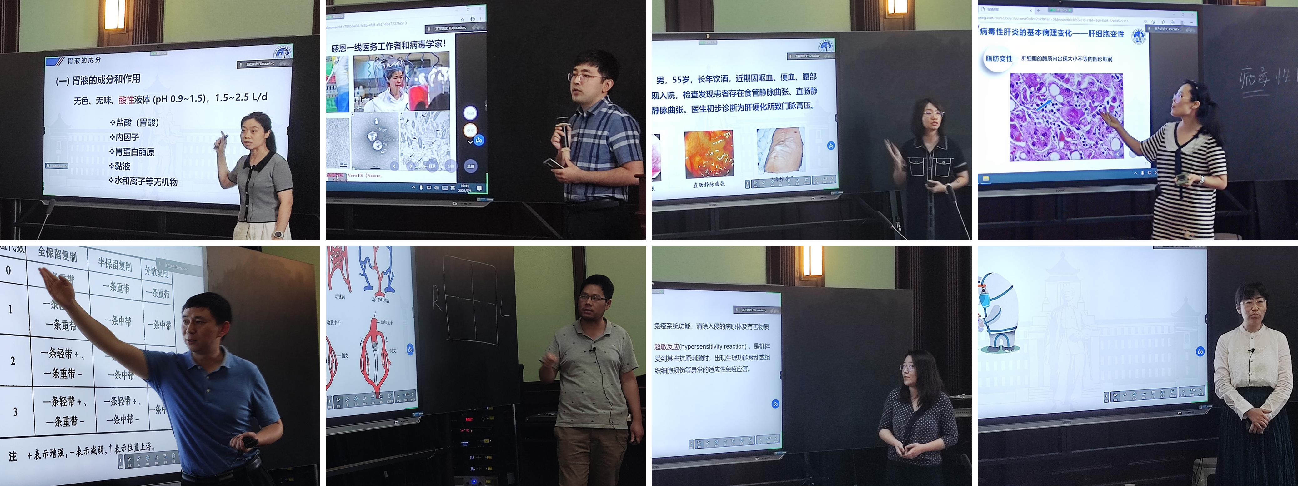在专家点评环节中,李一教授讲到:“大学课堂要有大学的质感,教师在传授知识的同时要关注学生能力和情感价值观的提升,教学方法要有启发性和引导性,要时刻问自己‘我’在课堂中的作用。”医学部督导组组长吴运涛讲到:“教师要在课堂节奏的艺术、提问的艺术、板书的艺术以及结课的艺术等方面下功夫,用教学理论和教学底蕴来支撑自身气场,形成自己的特色,给学生讲好课是件幸福的事情。”金祥雷部长对教师应具备的板书设计等五种能力以及选题等参赛注意事项进行详细解释和说明,对参赛教师的教学水平和教学风采加以肯定,同时对我院青年教师的成长提出宝贵意见。