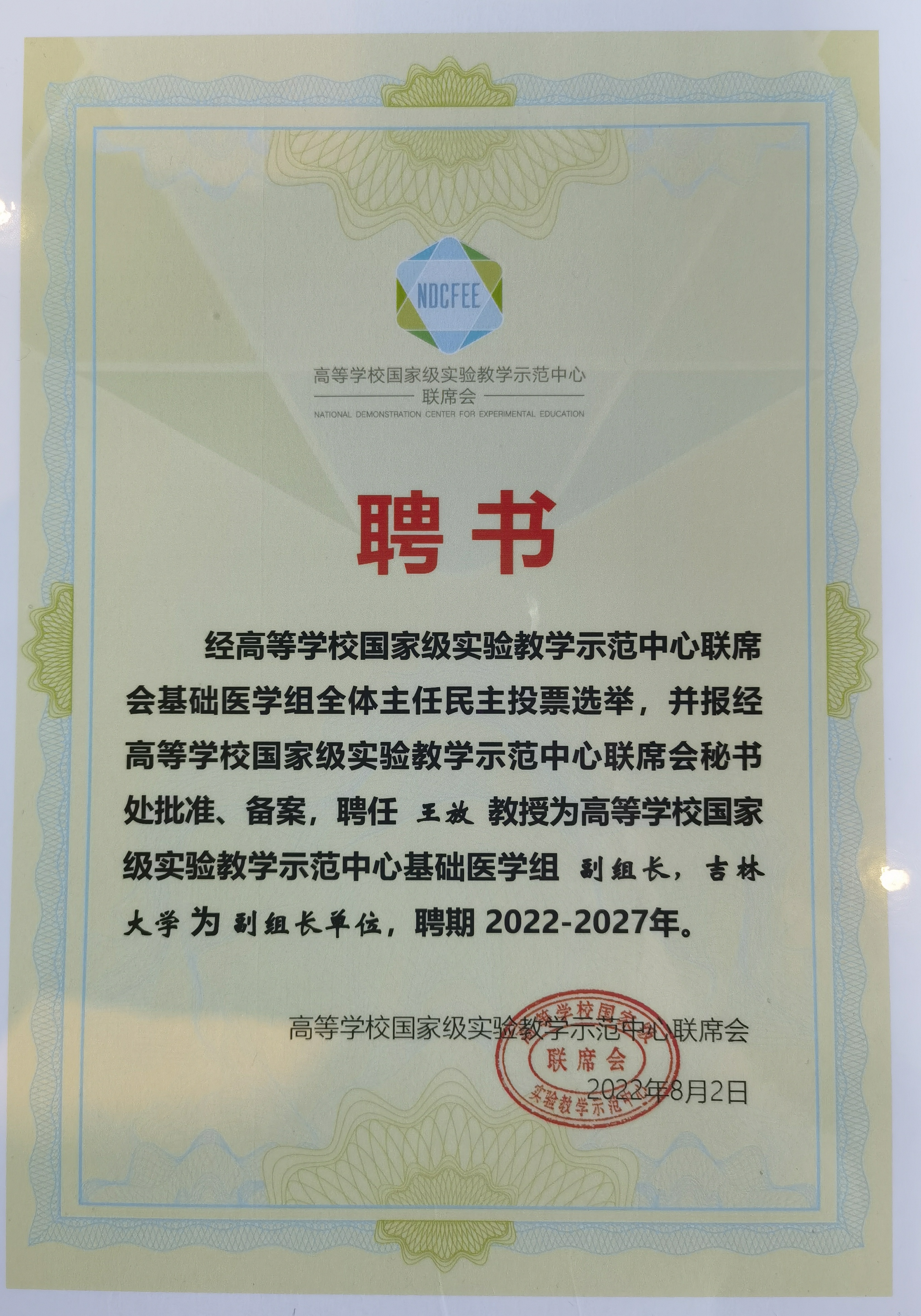 喜报——Galaxy银河王放教授当选高等学校国家级实验教学示范中心基础医学组副组长