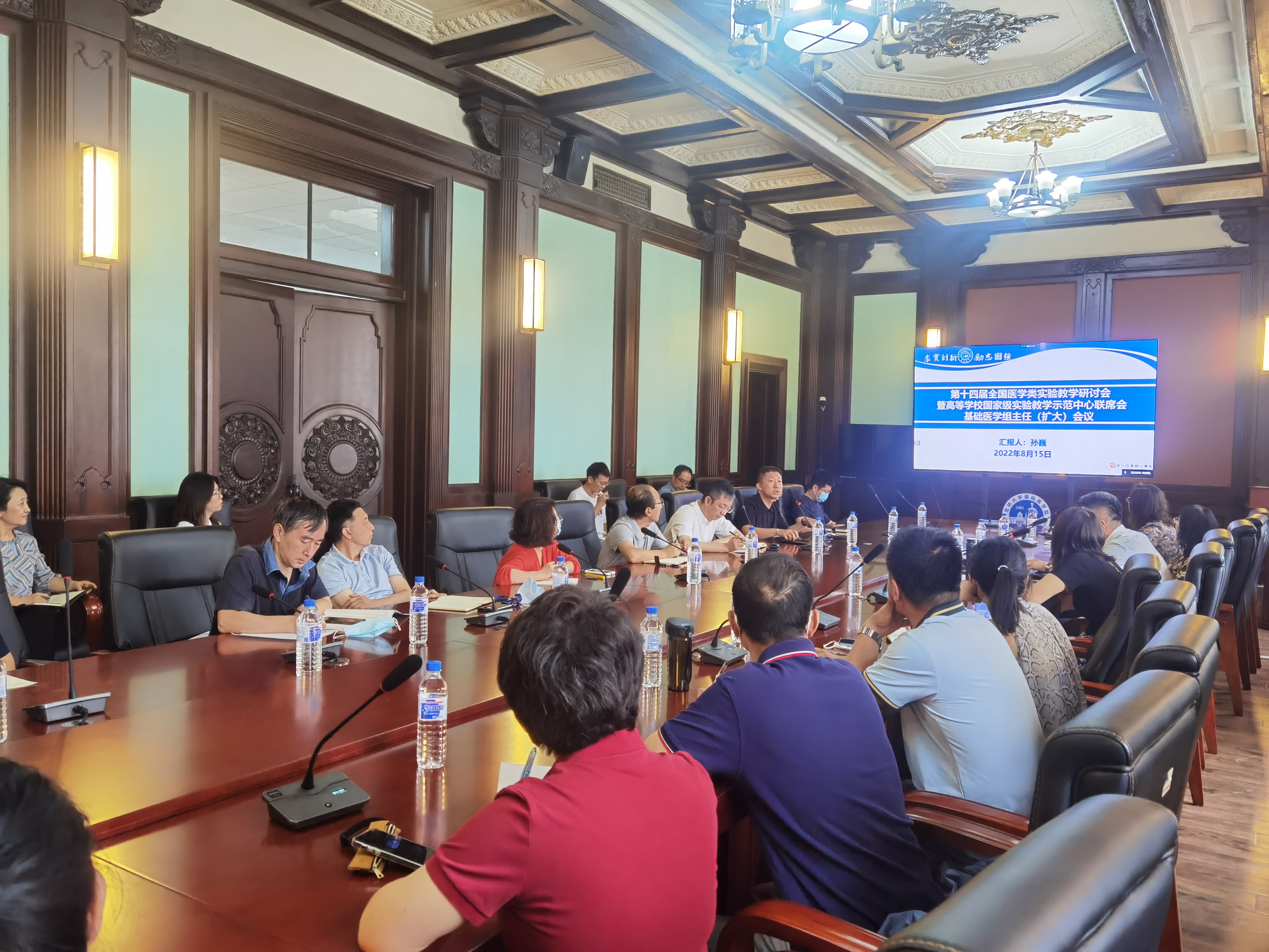 会上,副院长孙巍教授与生物化学和分子生物学实验教学中心主任吴山力就“第十四届全国医学类实验教学研讨会暨高等学校国家级实验教学示范中心联席会基础医学组主任(扩大)会议”参会的心得体会进行了汇报。孙巍教授以遵义医科大学的“基于虚拟仿真的医学仿真的实验室安全课程设计与应用实践”为例,指出当前的实验内容需要更新,同时要做到理论教学和虚拟教学的有机结合;吴山力主任结合实例分别从“科技进步”和“多学科融合”角度探讨实验教学改革方向,分析当前实验教学所面临的问题及解决路径。随后,组织学与胚胎学系主任刘佳梅教授、生理学系主任葛敬岩教授和病理生理学系主任苏静教授分别介绍了本学系实验教学改革情况以及下一步工作计划。王放院长对每位教师的报告进行点评,并提出建议,现场讨论气氛热烈。王放院长还强调了实验创新类大赛对于师生的重要性,下一步将加强此类活动的宣传工作,鼓励师生积极参与,提高教学成果的应用和辐射作用。